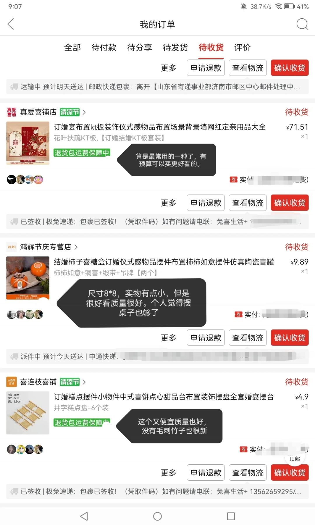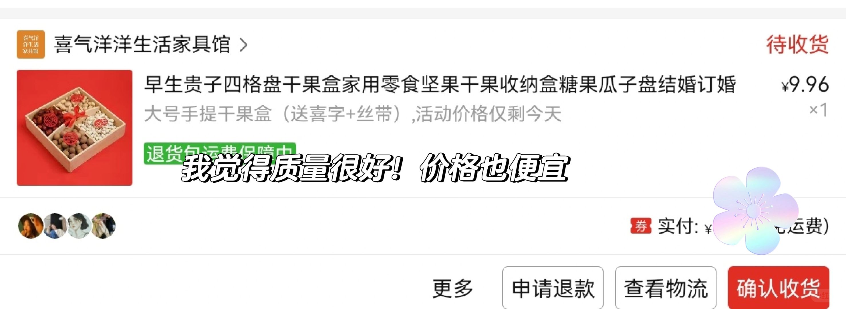 订婚啦~总计花费202元~ 昨天的订婚宴结束啦~感觉好累哦布置了很长一会,本来想自己发个言准备了两三天,结果长辈们太热情了,完全没有尴尬的局面,我准备的都没发言 有预算的可以找一个跟拍,不会拍照拍出来确实不太好看。东西也没必要准备太太太多,我觉得还是以实用为准。 小物件买的都蛮好的,做了好多攻略,不算全网最低也不算贵啦~有些实物没有拍上,都很好看。总之,订婚还是很圆满的呀~#订婚 #订婚宴布置 可乐15罐:39.9元,幸好提前拍照了,家里亲戚吃饭还盯着等啥时候喝 桃花酥:10个6.26元。放在圆形提篮上。 干果盒:9.96元,质量真不错,推荐,过年也可以放瓜子花生。 婚书:10元。稍微有点异味,拍完照收起来没打开过 喜字饼:6个12.21元,一个正好放一个井字格。味道没尝。 圆形手提篮:6.73,有毛刺,不介意的可以拍。 25厘米喜字2个:4.92元,质量中规中矩,不知道什么材质,怕桌子有空,摆着好看。 6个井字格:4.9元,应该是quan网最低,质量不错哦。 事事如意:9.89元。好看,质量不错,以后摆在家里也好看,但不大,如图与可乐对比。 KT版:71.51元。算最低最常用的,有预算和场地,可买其他风格这个吧,这个不搭好场景有点花,而且我定的酒店包间不大,看起来有点挤一样。 扇花和气球:太累了没用到所以没法测评,应该是quan网最低吧。 更新: 小喜字(手抛喜):便宜,我觉得不算很好质量,当个放拍照是好看的。用的多买这个合算,结婚也可以用,不用扔掉。结婚当天抛洒喜字这个价格不心疼。