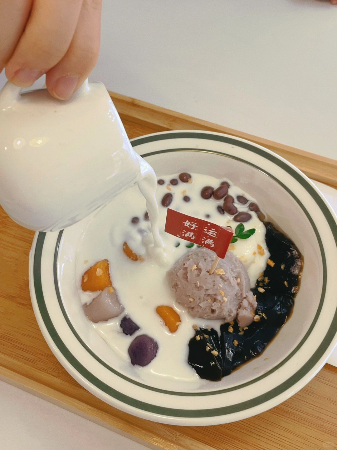第3⃣️站:泽国喜甜糖水铺。人均10到15。 这家店在泽国属于年轻的新店了,适合溜达了一圈吃了很多主食的宝子们来溜溜缝,点上一碗芒果西米露或者双芋麻薯仙草,和朋友在店里坐个个把小时聊聊天,极好👌 这家店的饮品价格都不贵,比起点了拿了就走的街边奶茶店,更建议不赶时间的宝子们进来这间糖水铺坐坐,拍照很好看!