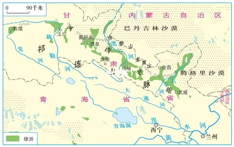 [三R]绿色和蓝色:河西走廊又称“塞上江南”。