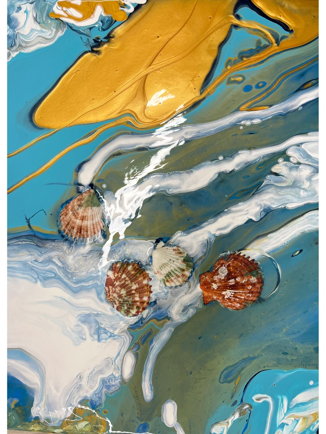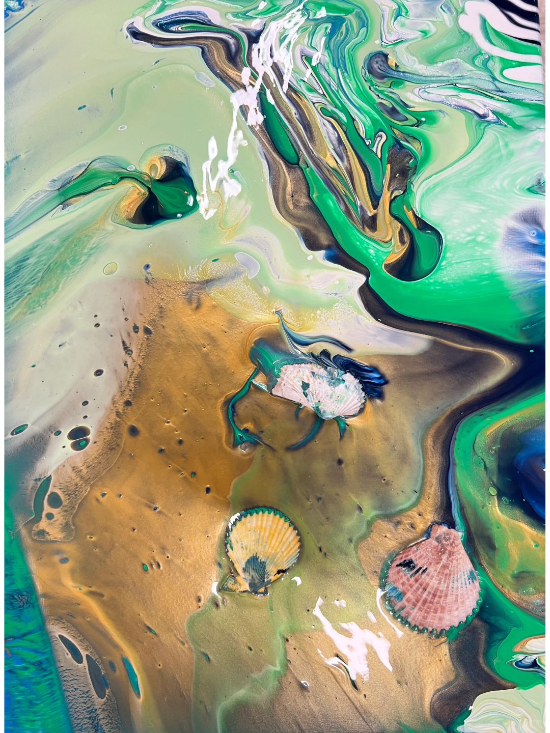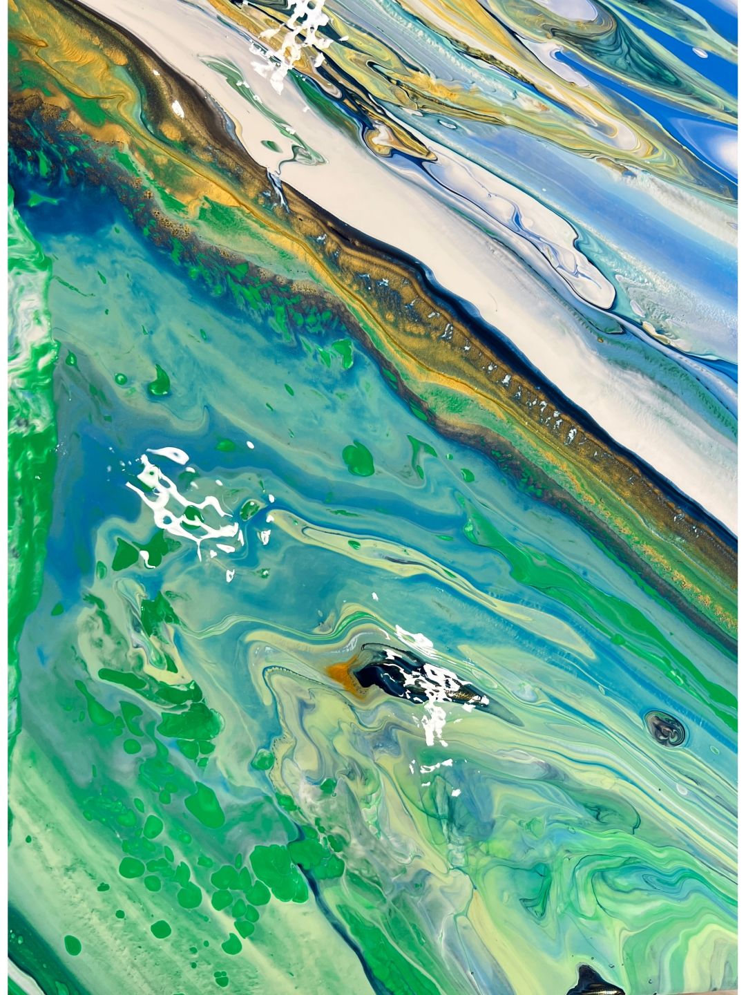 流体画《海洋》 今日课程《流体画海洋》 1.学习海洋的配色。 2.学习流体画制作方法“扣杯法”:将颜料依次倒入杯中,杯子倒扣在画布上,让颜料在画布上铺开。双手晃动画板,使颜料在画布上流淌,色彩会碰撞、融合出神奇的效果。