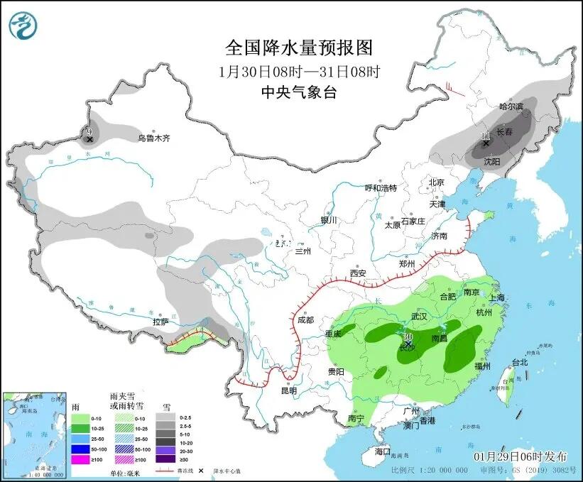 [一R]雨雪覆盖范围广:本次雨雪过程基本覆盖整个中东部,黄淮及其以北地区以降雪为主,江汉、江淮西部及湖南西部、贵州东部等地有雨转雨夹雪或雪;陕西东部和南部、山西南部、河北南部、河南、山东、湖北、湖南西北部、贵州东部及辽宁东部、吉林东部等地的部分地区有暴雪、局地有大暴雪或特大暴雪,累计降雪量有10~20毫米,局地超过30毫米。长江中下游及以南大部地区有中到大雨,部分地区暴雨;1日至4日并伴有较大范围的雷电天气。