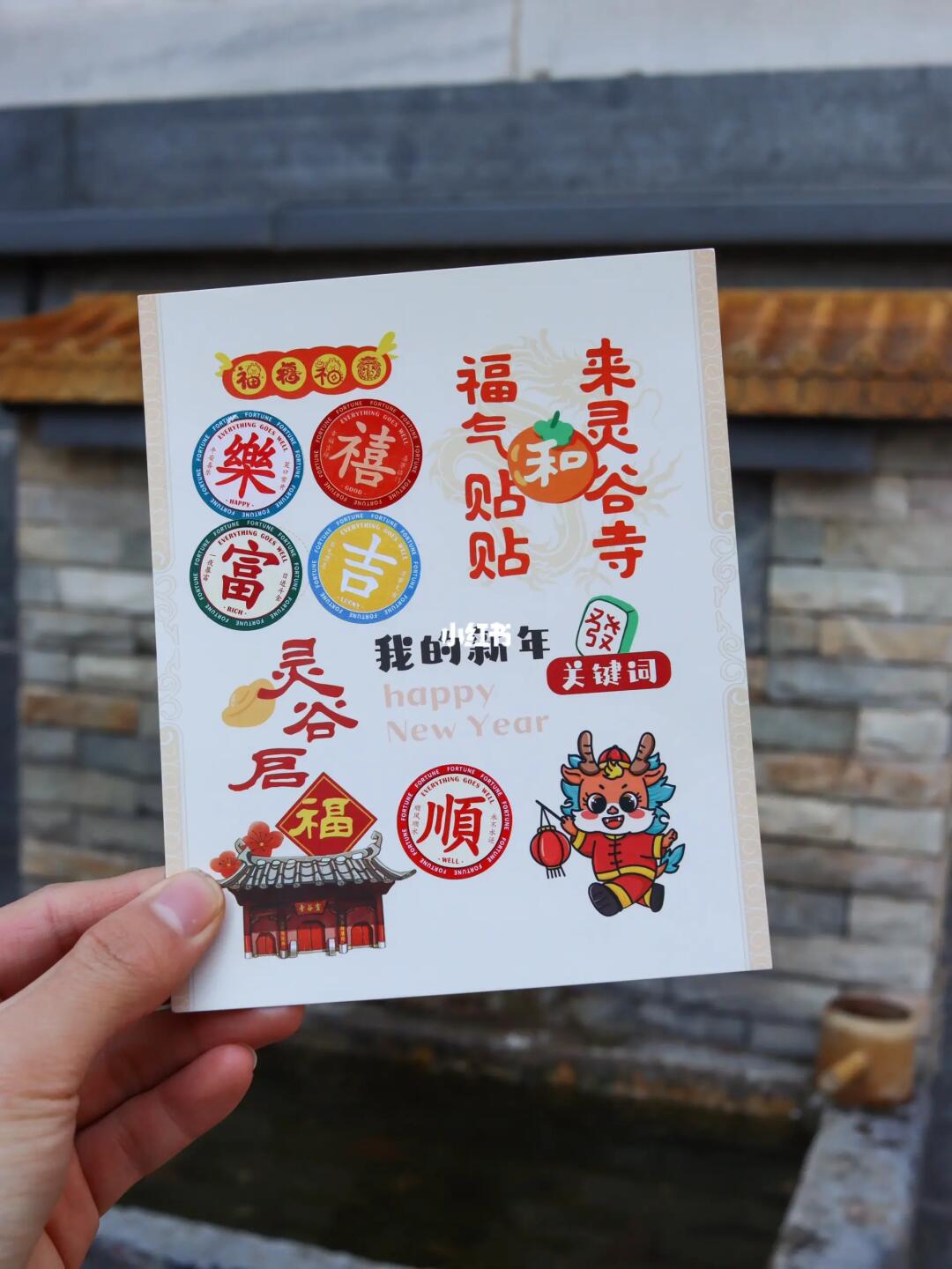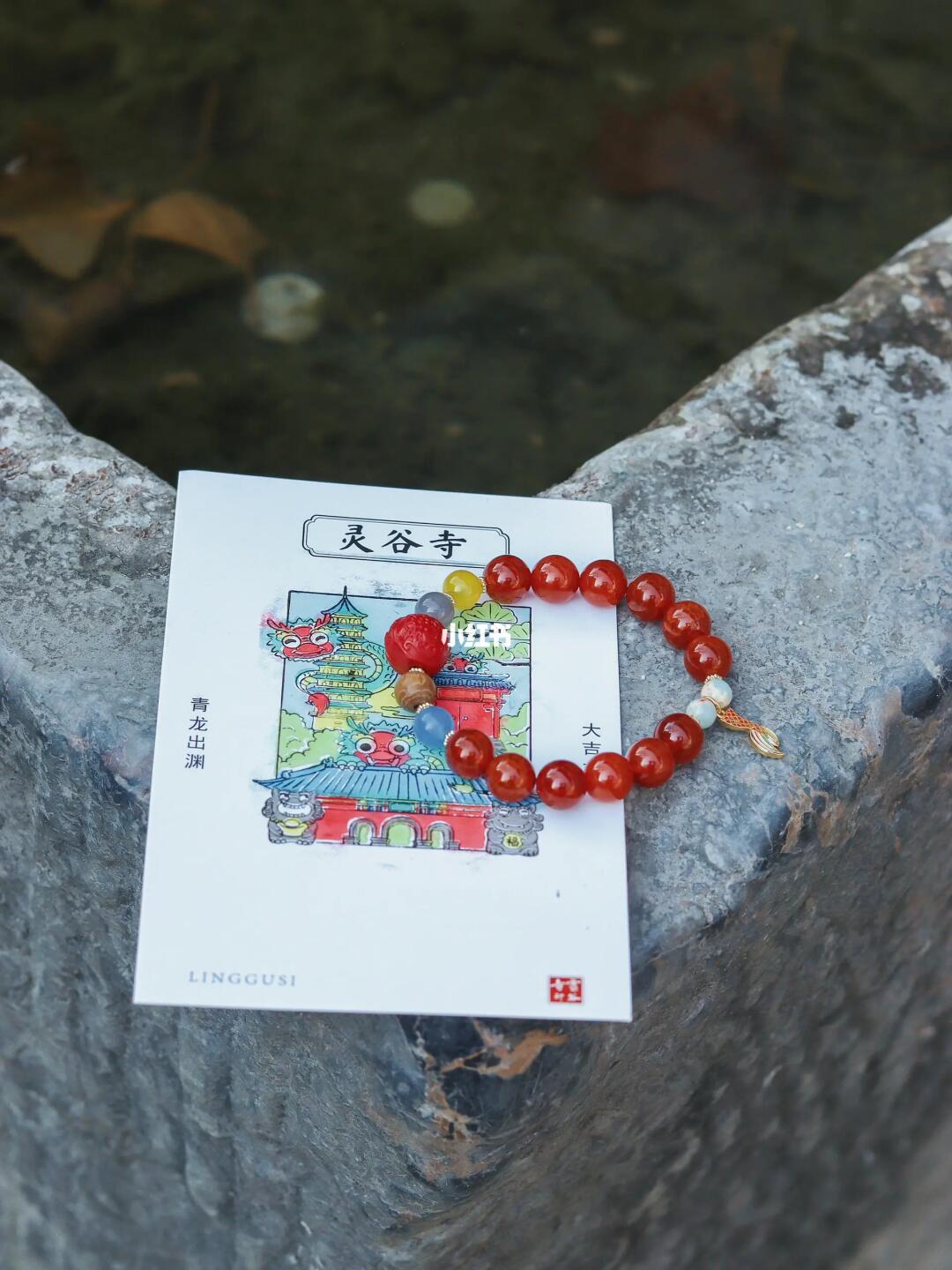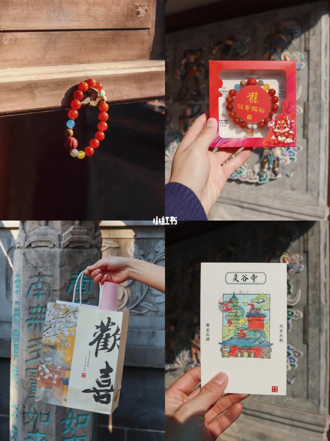 ㊁灵谷寺文创店就在寺门口处,可以领取福气底卡及贴纸,写下祝福语或盖章。龙年新出的龙灵珠手串颜值特别高,戴手上很好看。