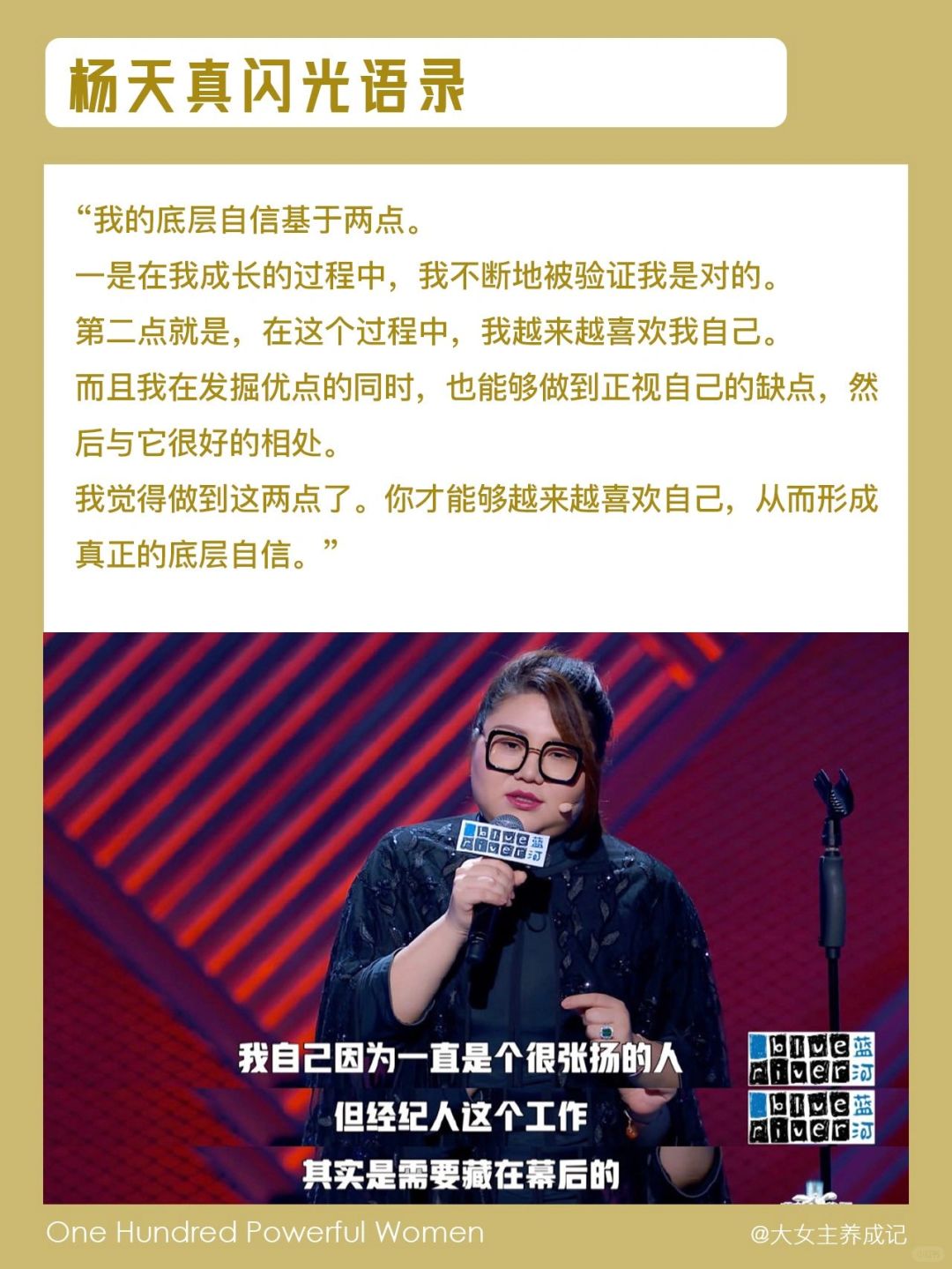 她大码、小眼、小个子,在一袭红妆、烈焰红裙的映衬下,却显得十分霸气和抢眼。 看似很普通的一个人,殊不知她又狠又敢,雷厉风行,果敢、狠断的专业能力。她更是异常自信,开挂式的人生更是让无数人刮目相看,杨天真真的一点也不天真。