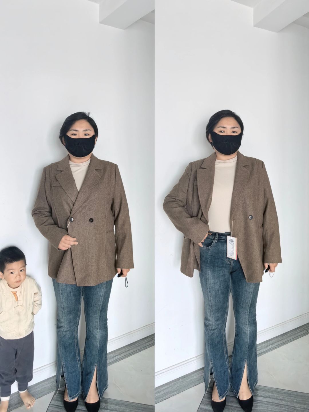 150斤穿出老钱风?杨天真家西装有点东西 可能是我今年买到的版型最好的西装了 正面看没有很宽的肩线✔️ 侧面看不是圆成一个桶✔️ 背面看线条明朗✔️ 不长不短好搭配✔️ —— 不过我还是退了 原因有二,其一我按正常拍的3码,肩宽胸围长短都挺合适,但倒数第二张图可看出,抬手臂肩背有紧绷感; 其二是含有羊毛成分,袋子上大字标注“建议干洗”!!!懒人不能忍 不过还有个大环境因素,就是今年降温太快,已经没多少时间可以穿西装了