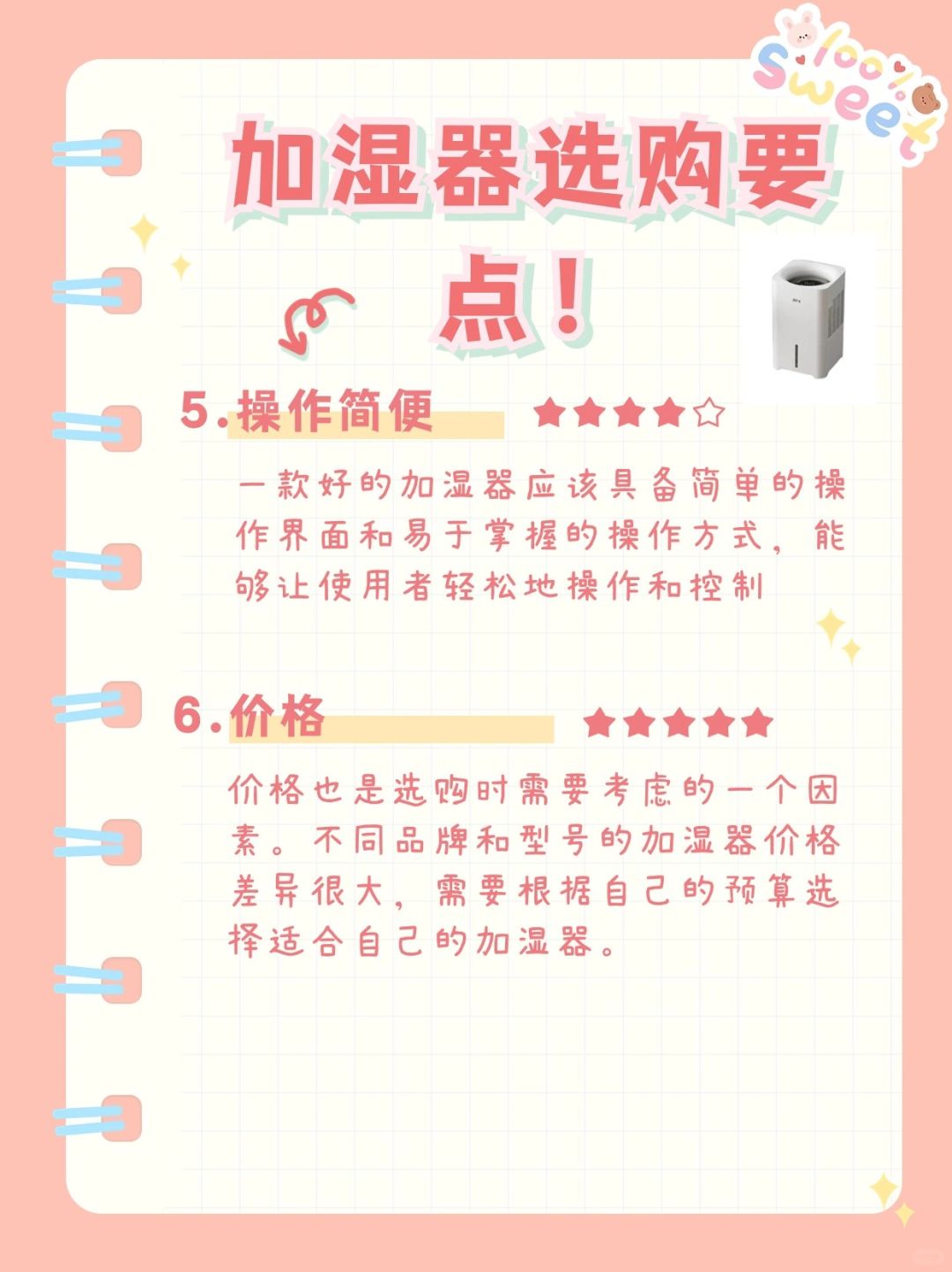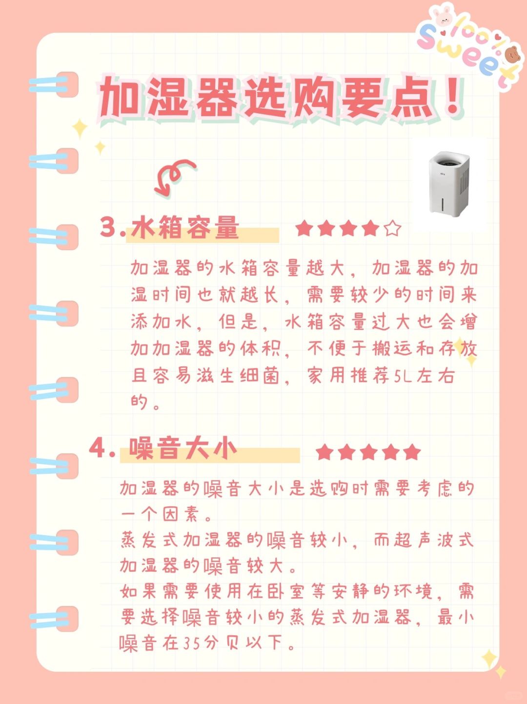 选择一款合适的加湿器主要看以下几个要点: