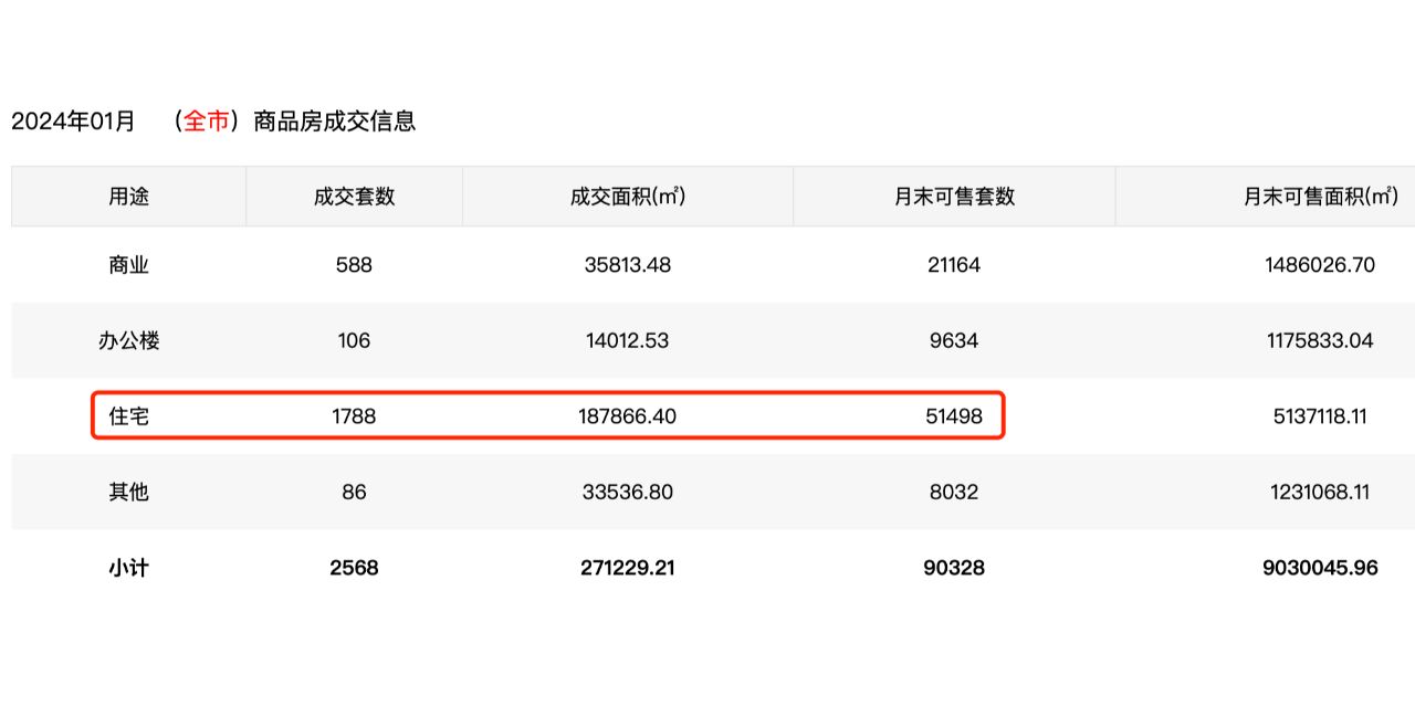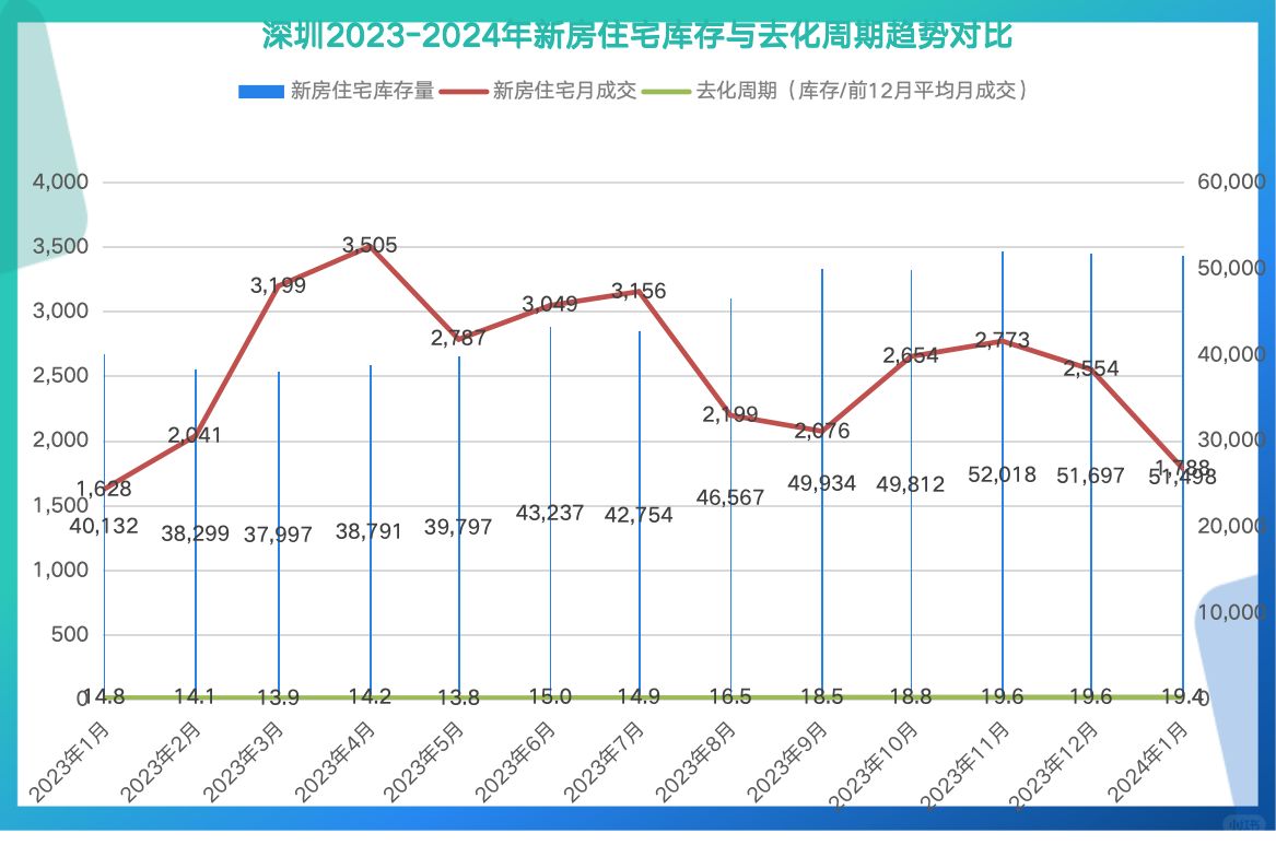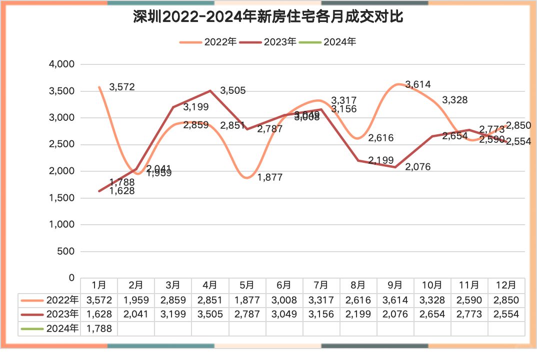 深圳2024年1月新房住宅成交1788套,比2022年1月的3572套下降了50%,比2023年1月的1628套增加了160套,比2023年12月的2554套减少了766套。