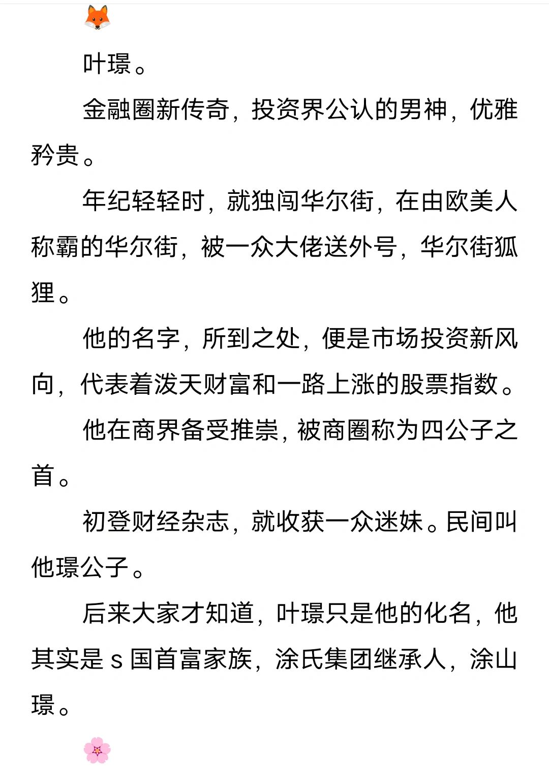 后来大家才知道,叶璟只是他的化名,他其实是s国首fu家族,涂氏集团继承人,涂山璟。