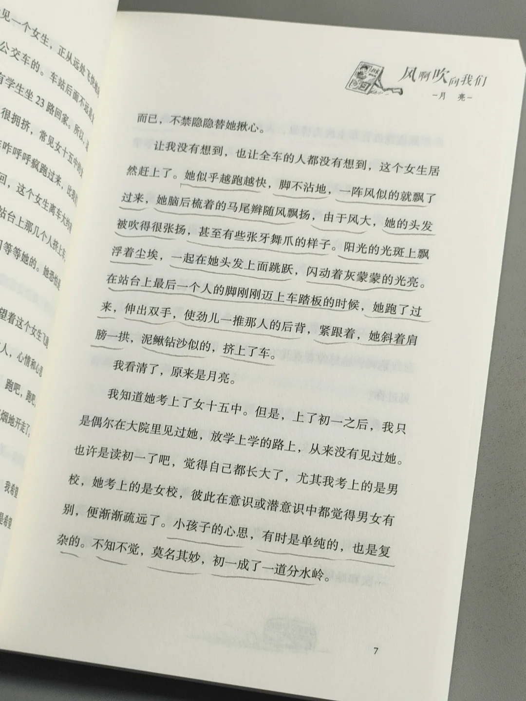 写初一的“我”和月亮、麦秋、石头四个孩子的友情故事,尽管他们性格、经历和家庭不同,友情的选择和建立充满矛盾,一波三折,却被作者书写得真实、生动、温馨,充满苦恼和快乐、趣味和欢欣,读来像和煦的清风吹来。