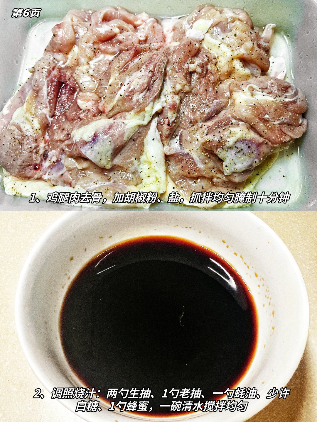 1. 鸡腿肉去骨,加入胡椒粉、少许盐,搅拌均匀腌制10分钟。
