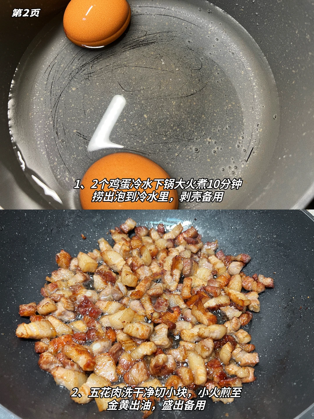 1、2个鸡蛋冷水下锅大火煮10分钟,捞出泡到冷水里,剥壳备用