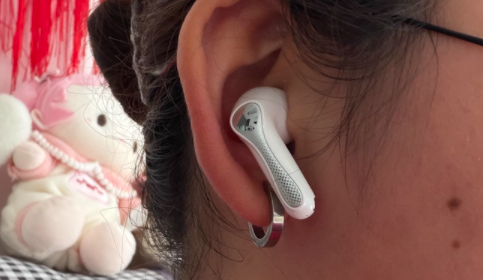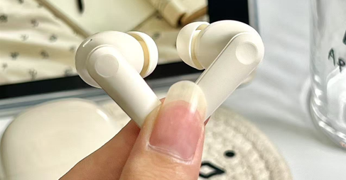 佩戴体验:轻量化腔体搭配 4 种尺寸亲肤硅胶耳塞,人体工学曲面贴合耳道,分散压力,单耳重量轻盈,就算是侧躺使用的话都是不会硌耳朵的,轻量化机身不会因风阻晃动,佩戴无负担
