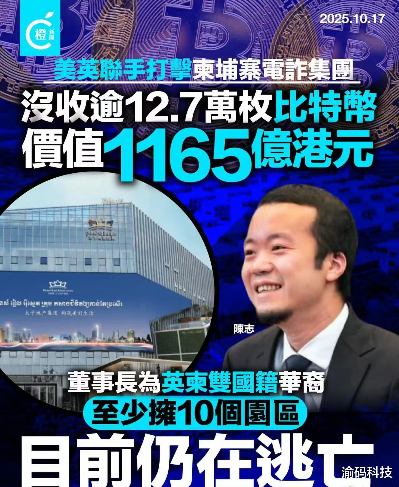 2025年10月14日,美国司法部宣布一项前所未有的执法行动:成功查获柬埔寨“太子集团”实际控制人陈志名下127,271枚比特币,价值高达150亿美元(约合人民币1070亿元)!