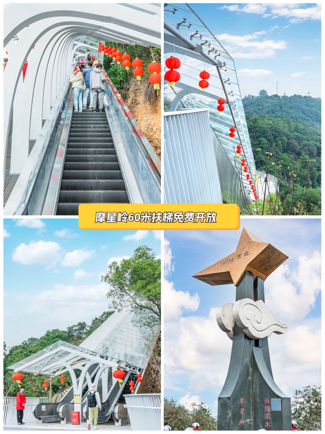 现在白云山摩星岭观光扶梯于2月5日正式免费开放啦‼️