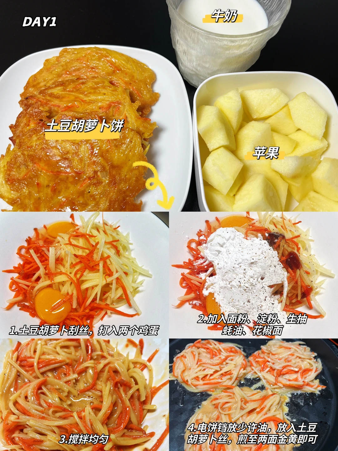 新春佳节,是阖家欢乐、团圆幸福的时刻✨。对于初中生来说,除了享受假期的轻松与欢乐,也要注重健康饮食,为新的一年注入活力哦!💪接下来,为大家推荐一周不重样的新春特色早餐食谱,让初中生们在欢度佳节的同时,也能品尝到美食的魅力。🍽️ 🥣周一早餐:土豆胡萝卜饼+牛奶+苹果 🥣周二早餐:牛油果虾仁热狗+薯条+番茄酱+三色芋圆+葡萄 🥣周三早餐:扇贝丁煎饺+地瓜+蘸料+葡萄柚汁+火龙果 🥣周四早餐:番茄鸡肉焗饭+奶咖+果冻橙 🥣周五早餐:牛肉豆芽米粉+银耳汤+猕猴桃 🥣周六早餐:南瓜蒸糯米+玫瑰红茶+苹果 这一周的早餐食谱既营养丰富又美味可口,适合初中生在迎接新年的同时保持健康的生活状态。🎉希望这些食谱能为大家的春节增添一份温馨和欢乐!🎈