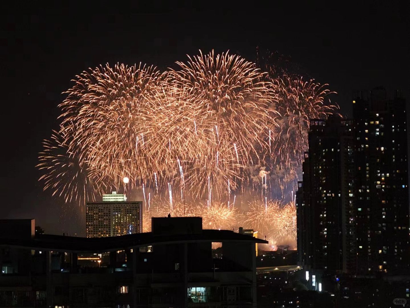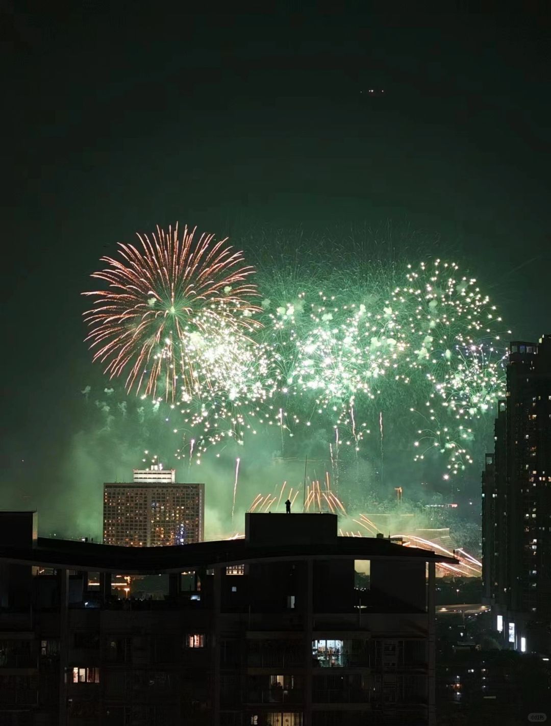 全网寻找这位站在楼顶的大哥 昨晚广州烟花汇演,全程拍到前面这栋楼站在楼顶的大哥