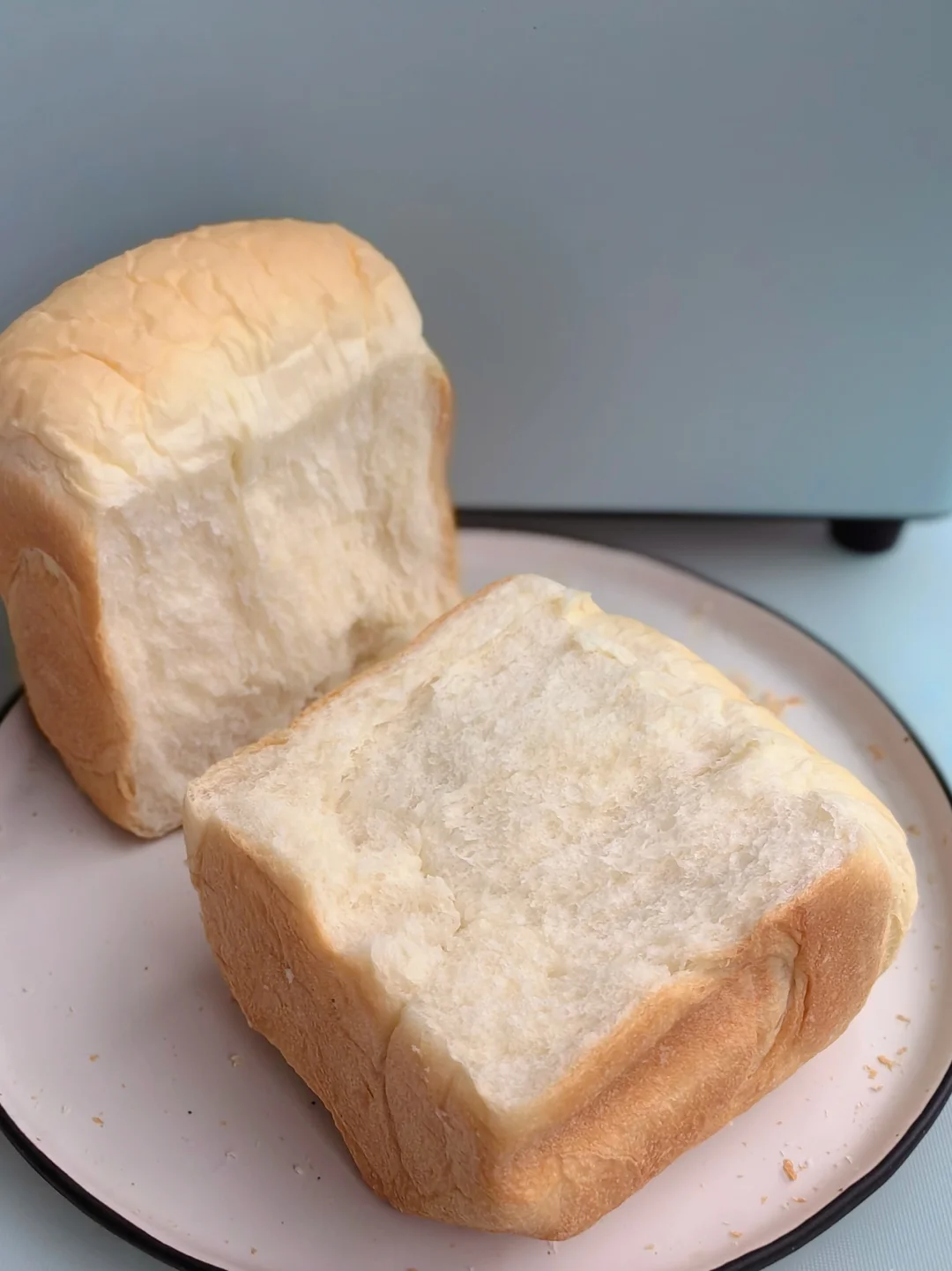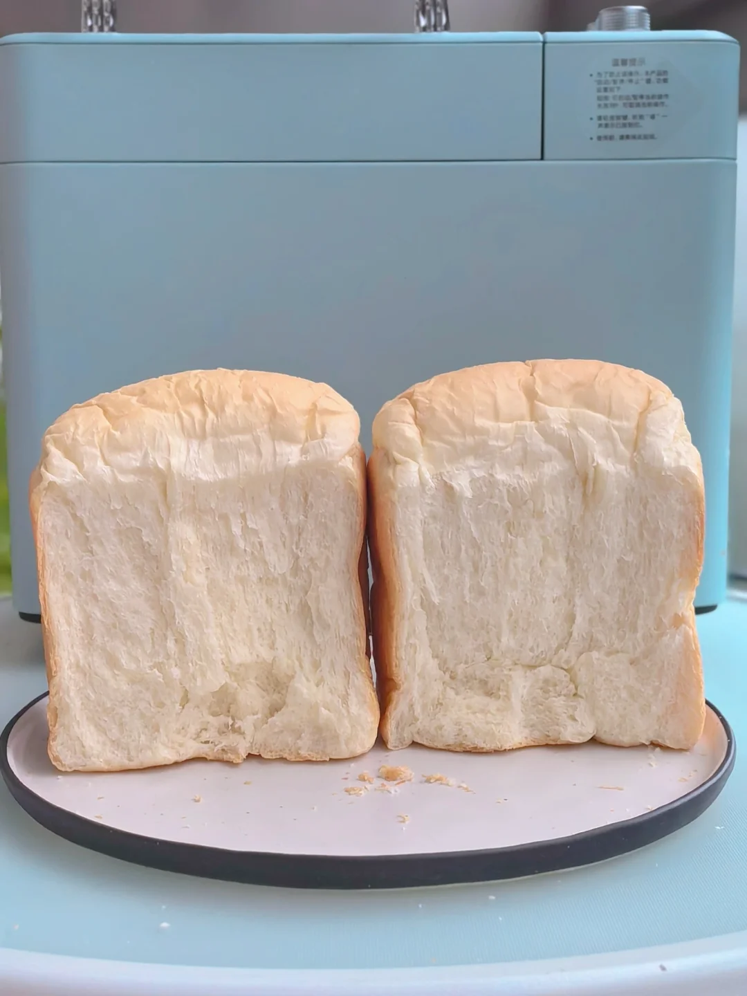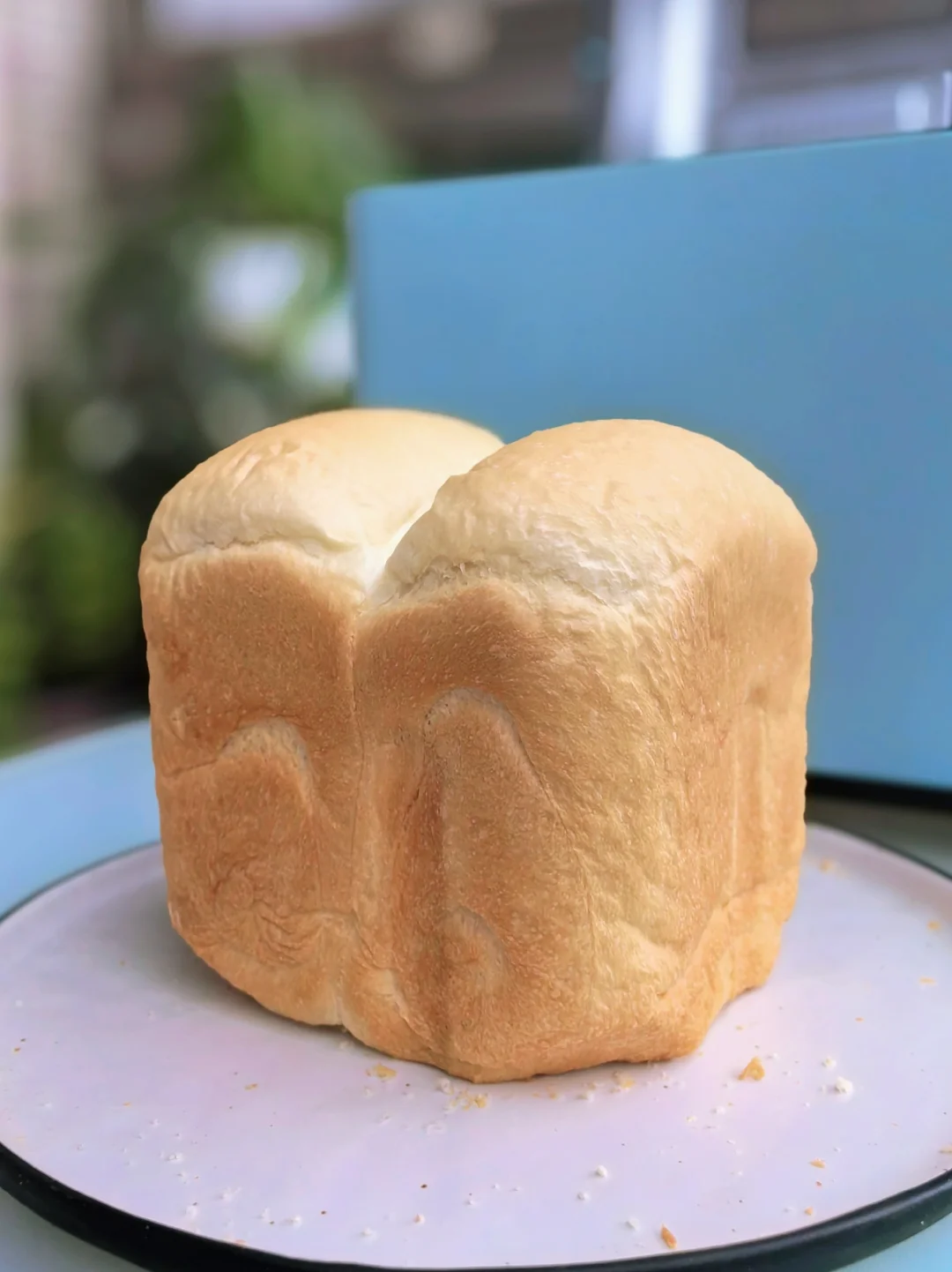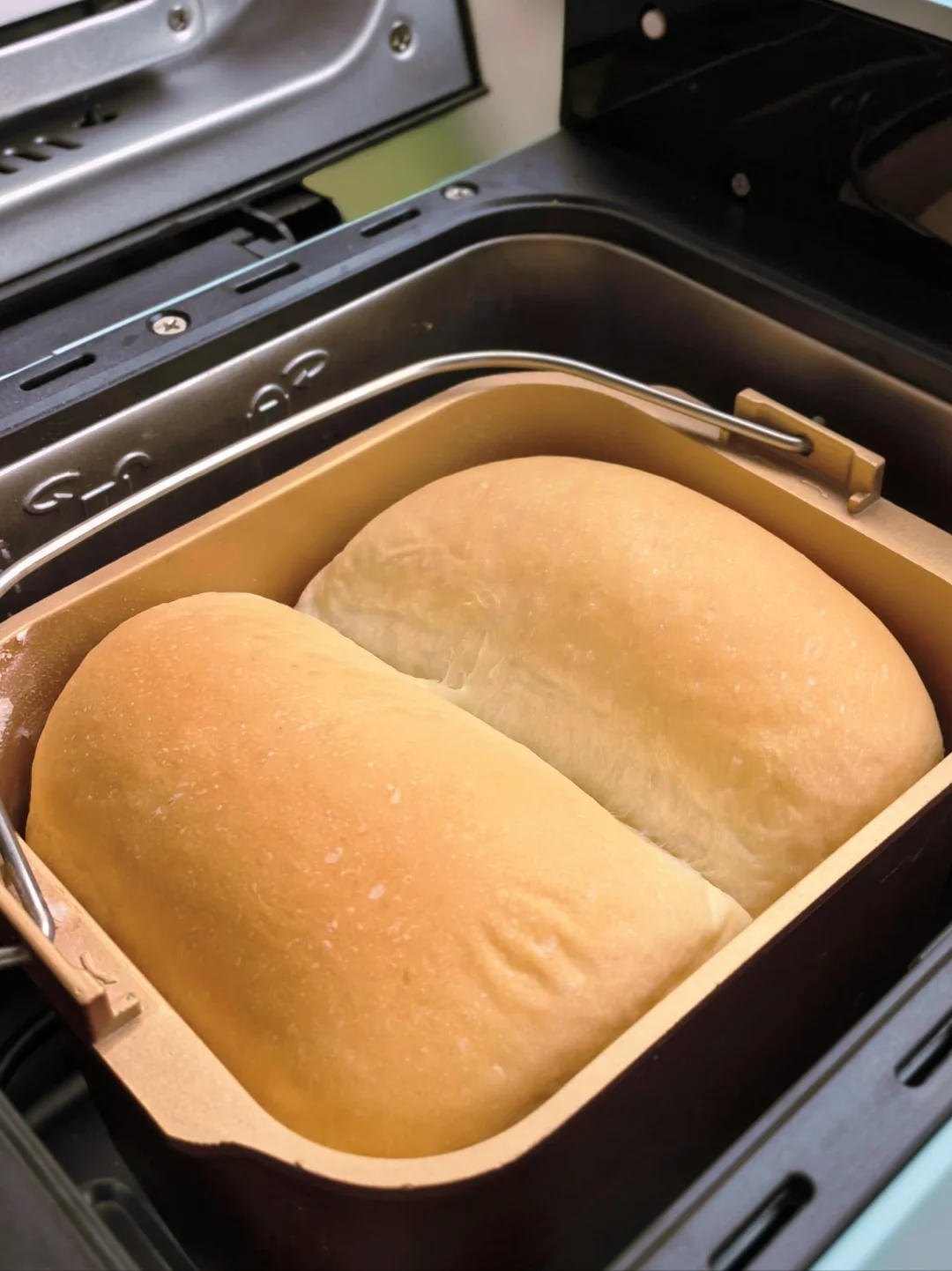 7. 等到哔哔声响,提示结束就可以开盖取出面包了。如果用其他面包桶壁比较薄的面包机,为防止过焦,可以提早5分钟取出。