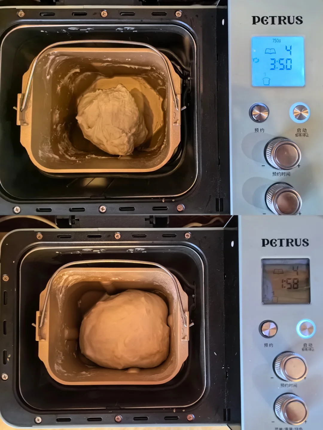 6. 面包机按下暂停/继续键,继续面包机后面的程序。如果没有有暂停键的,放回后,放下盖子就行。接下来就啥都别管了。