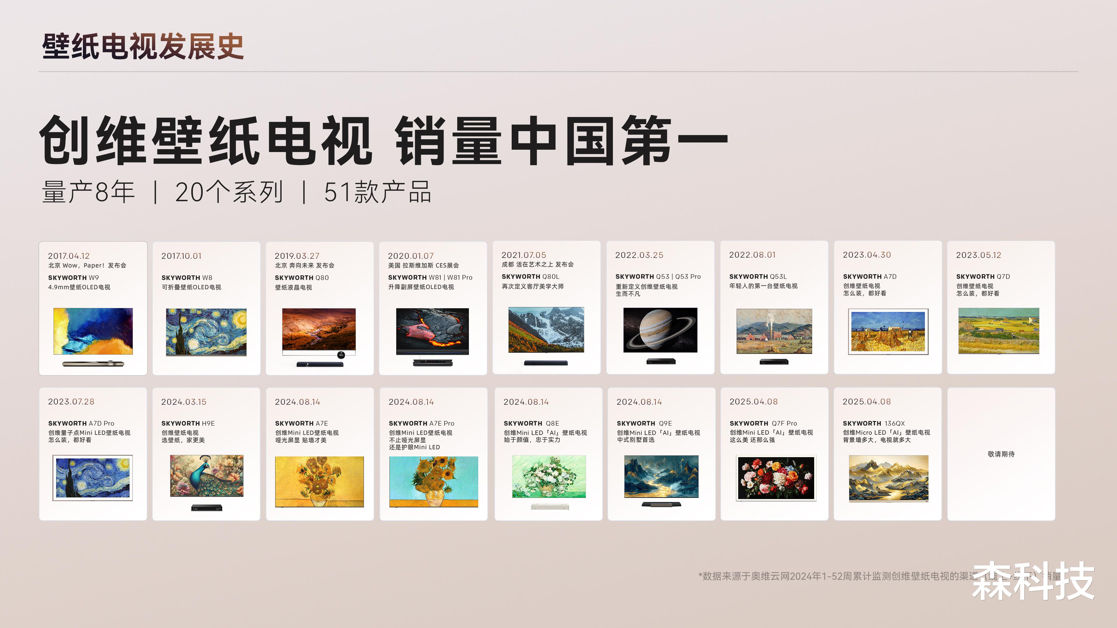这8年,不少品牌急于收割用户,推出模仿壁纸电视的产品,但创维依旧稳扎稳打,实现从“一张”壁纸的点睛之笔到“整墙”壁纸的跨越式发展。量产20个系列、超51款的壁纸电视产品背后,创维坚持对用户只做一件事:展示什么才是真正意义上的美。