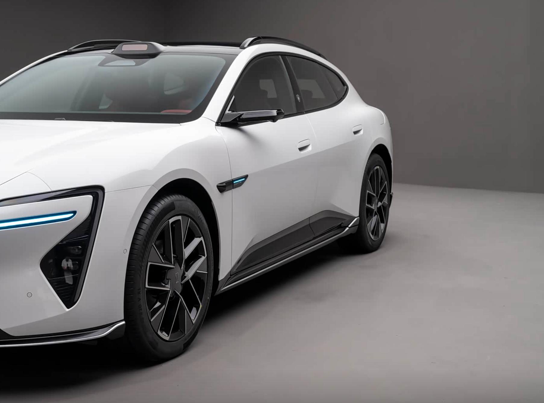 车身侧面,阿维塔06T采用了典型的猎装车设计手法,车顶线条更为平直,D柱略微后移,以保证车内的乘坐空间。车顶配备行李架,可以搭配车顶行李箱增加储存空间。半隐藏式门把手兼顾了美观和安全,可选装的电子后视镜也为喜欢尝鲜的人群提供了更多可能。车身尾部,阿维塔06T的层次感较为丰富,中部是贯穿式的LED尾灯,点亮以后也颇具辨识度。