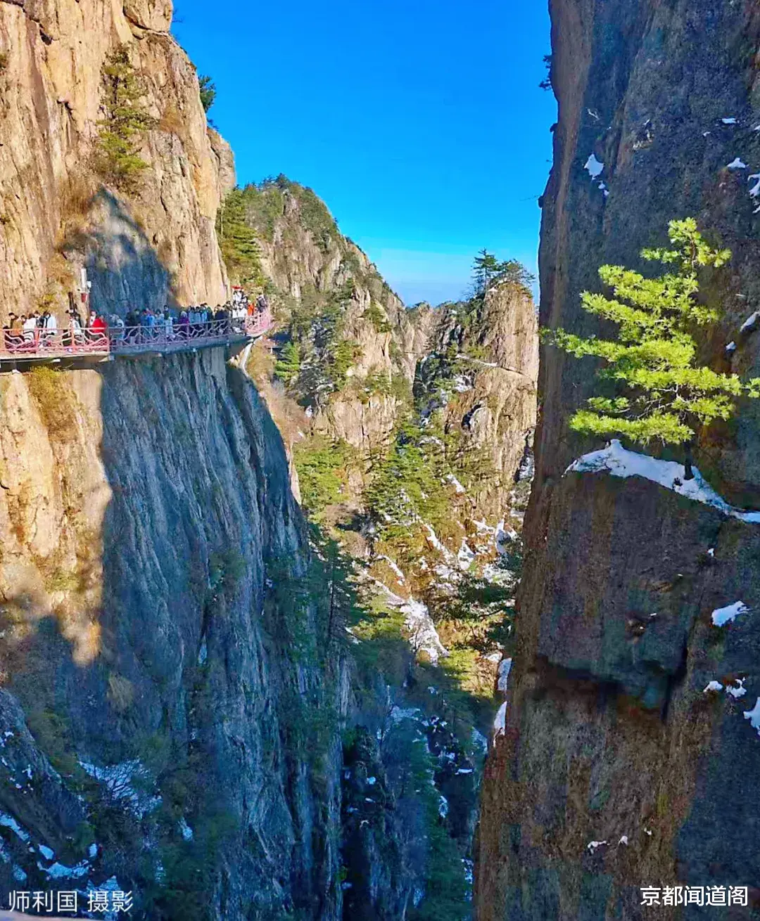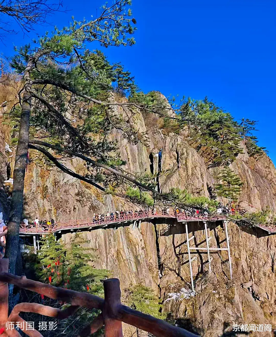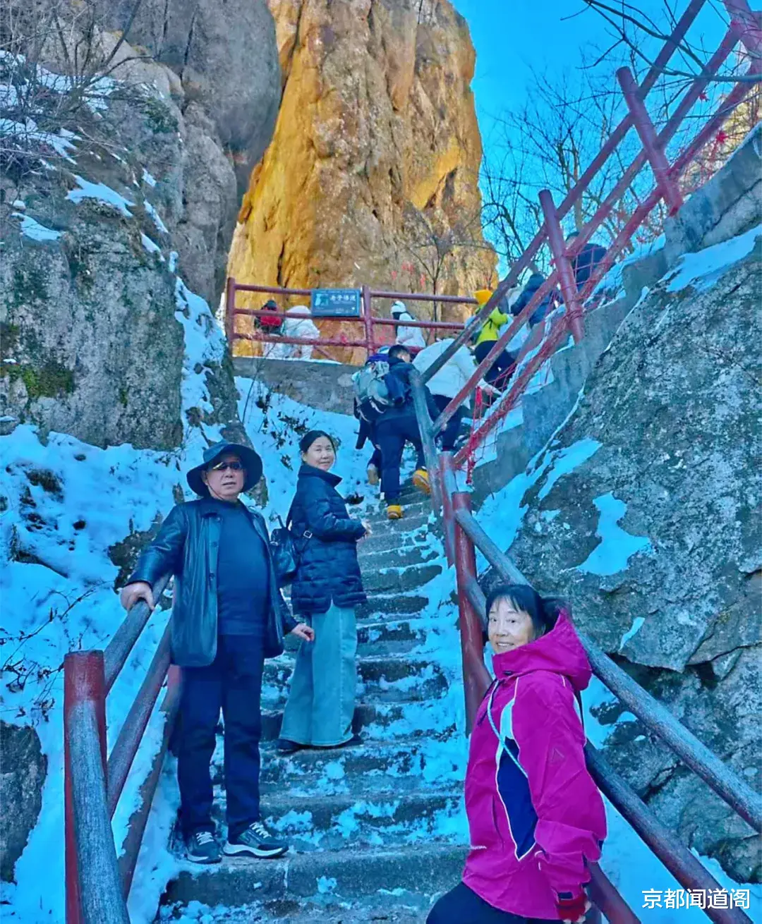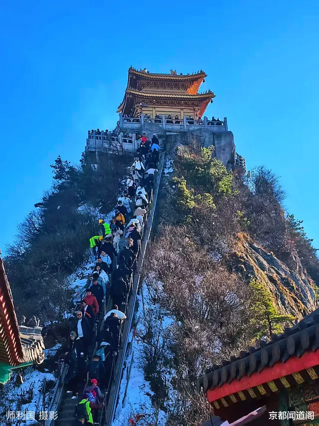 星期五,我们踏上河南老君山,山下阳光明媚,山上白雪皑皑。自古以来,老君山便承载着厚重的历史文化底蕴。雄奇的自然风光,仿佛是大自然的鬼斧神工,将山川的壮丽与神秘融为一体。山峰直插云霄,让人望而生畏。漫步在山间小径上,仿佛能感受到那种超凡脱俗的宁静与神秘。云在脚边流转,古柏攀着崖壁,连绵的山脉被白雪覆盖,洁白无瑕的雪与湛蓝的天空相互映衬,构成了纯洁而壮阔的画面。老子归隐的传说藏在苔痕里,每一步都踏着时光的褶皱。宛如梦幻仙境,令人陶醉。