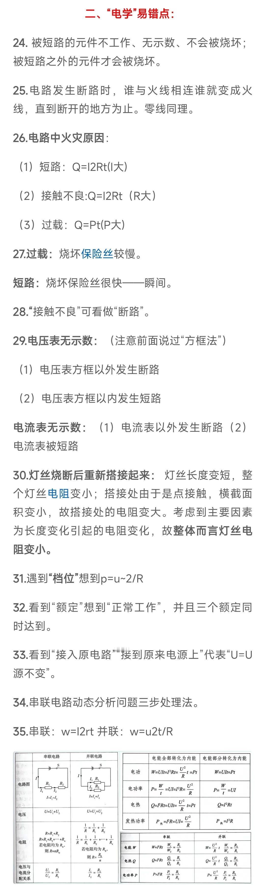 初中物理“电学”易错点与技巧归纳!中考必考! 全部初中物理易错常错题、知识点总结,尽在八套中考学霸物理错题集中,需要请点图片下方专栏!