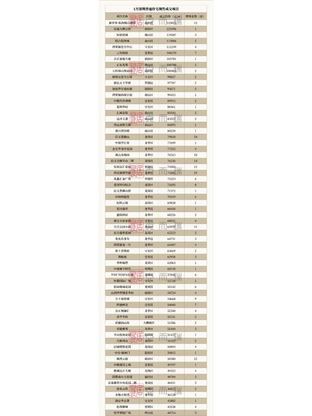 2024年1月深圳住宅项目预售、现售成交均价和套数汇总(网签数据)! NO 1:宝安
