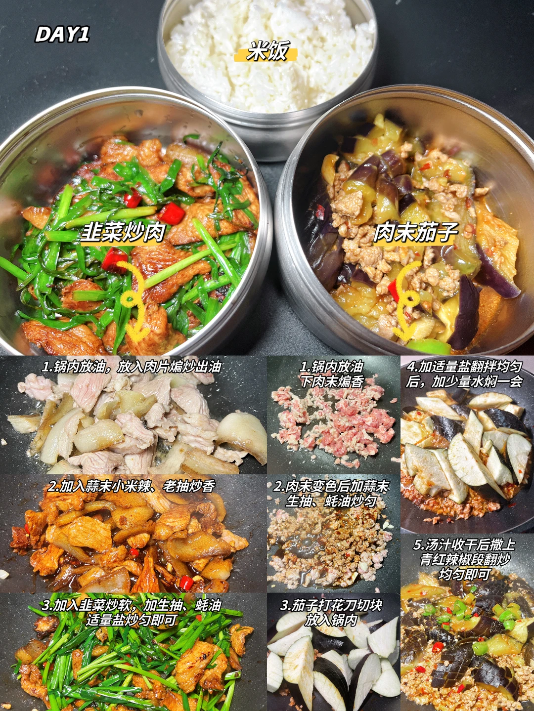周一:春天的味道🌱(韭菜炒肉🥩、肉末茄子🍆)
