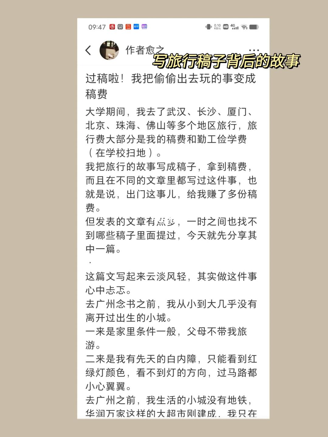 上一篇笔记分享了我将旅行故事写成文章拿到稿费,以及写稿子背后的故事。