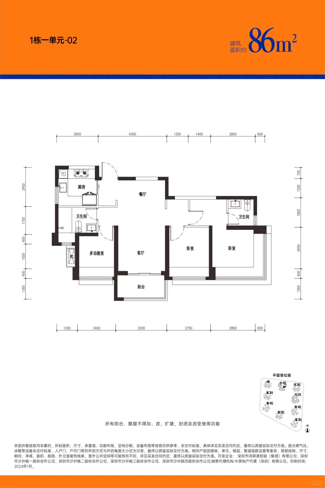 鸿荣源珈誉府2区带尺寸户型图来了!