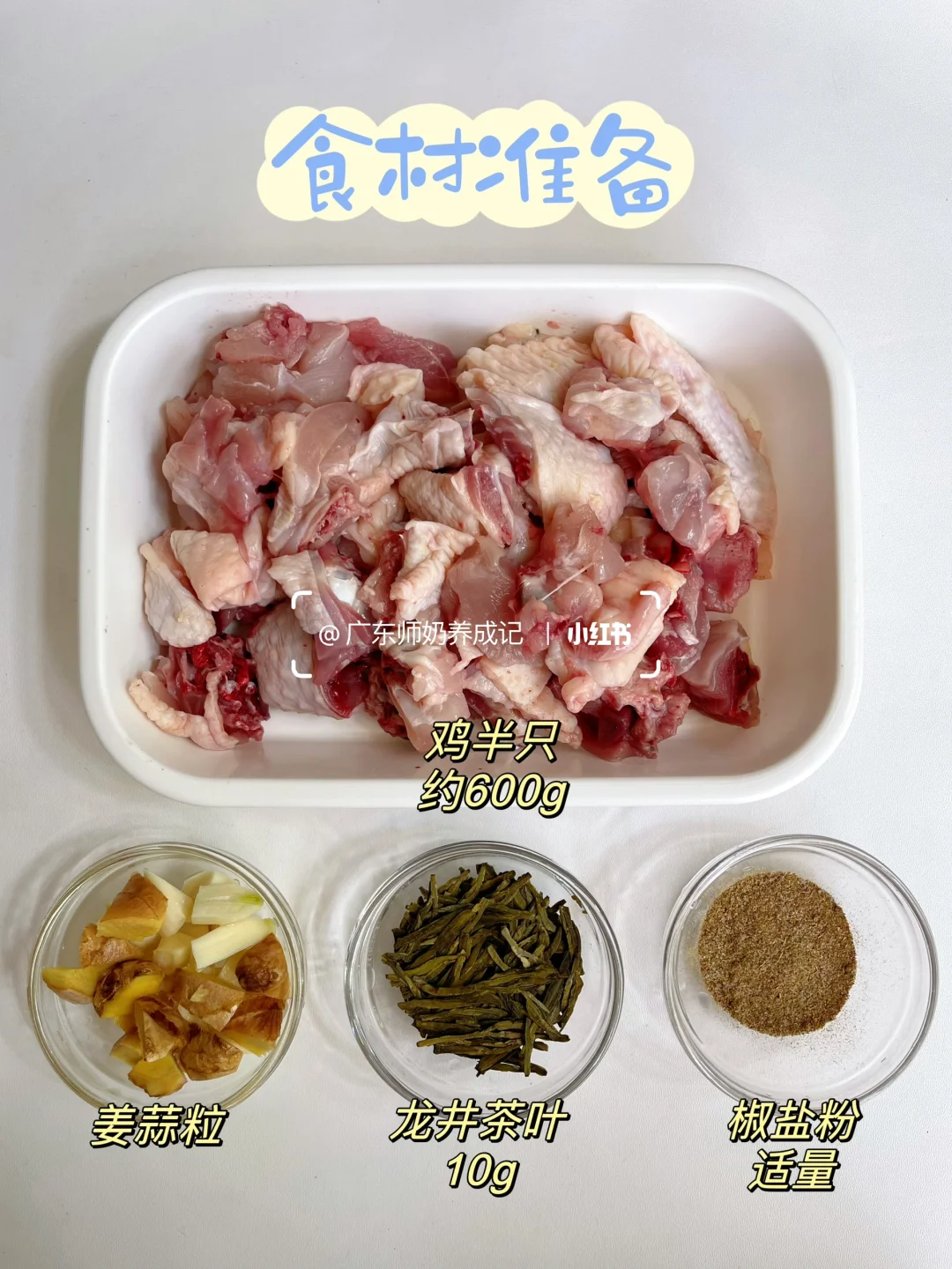 📝【食材】:鸡肉,龙井茶,姜蒜,葱花,椒盐粉