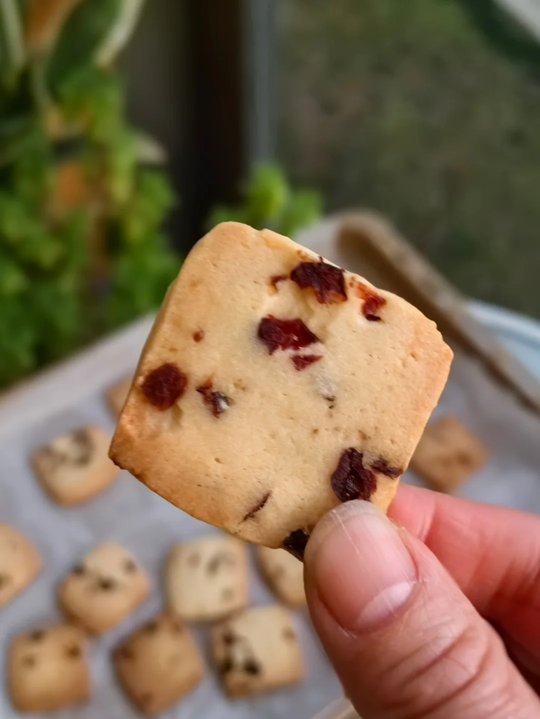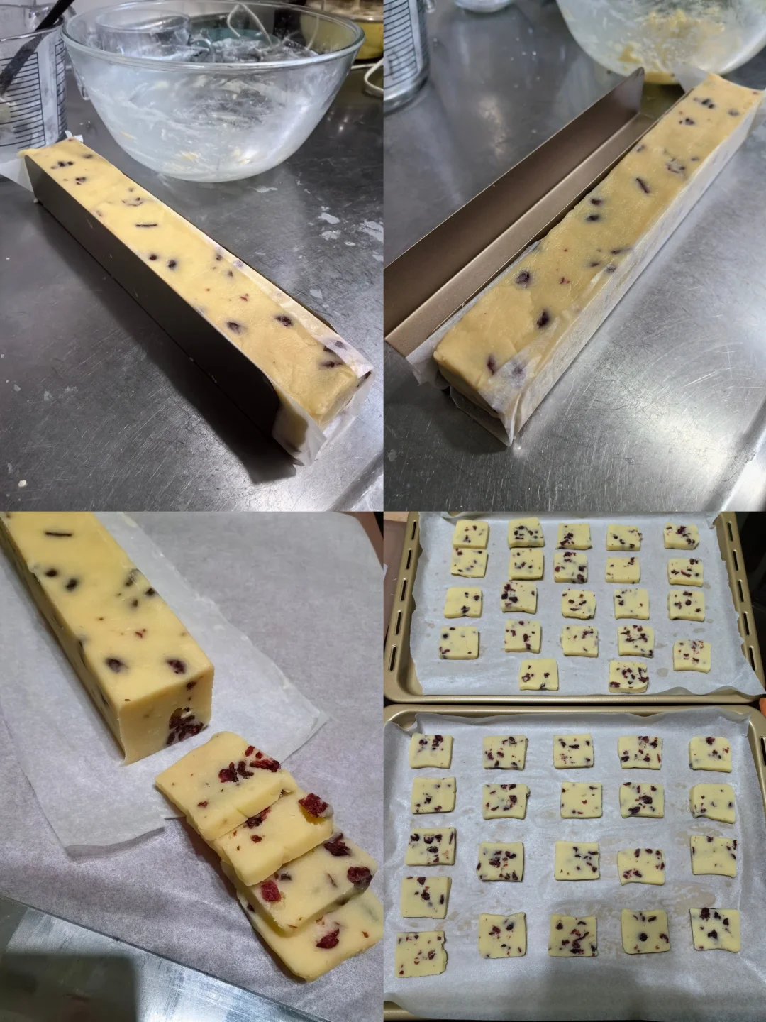 这是一款制作很简单的饼干,不需要打发黄油,鸡蛋用量小,所以也不用担心鸡蛋和黄油乳化不彻底,成功率高,蔓越莓干也可以用其他干果代替,如葡萄干、樱桃干等。