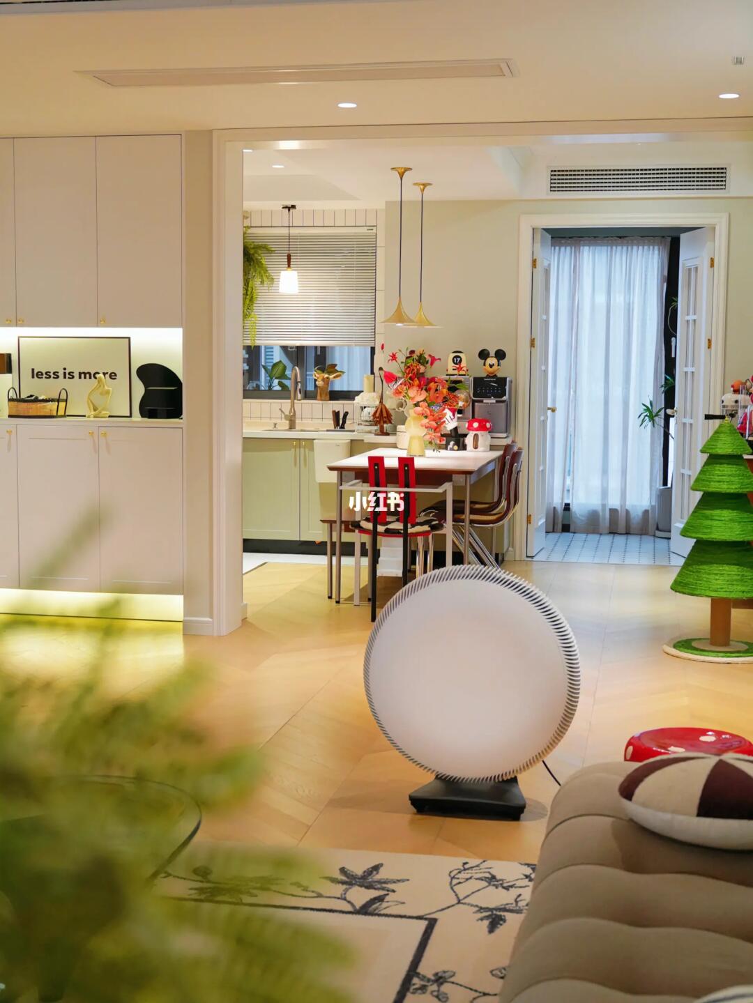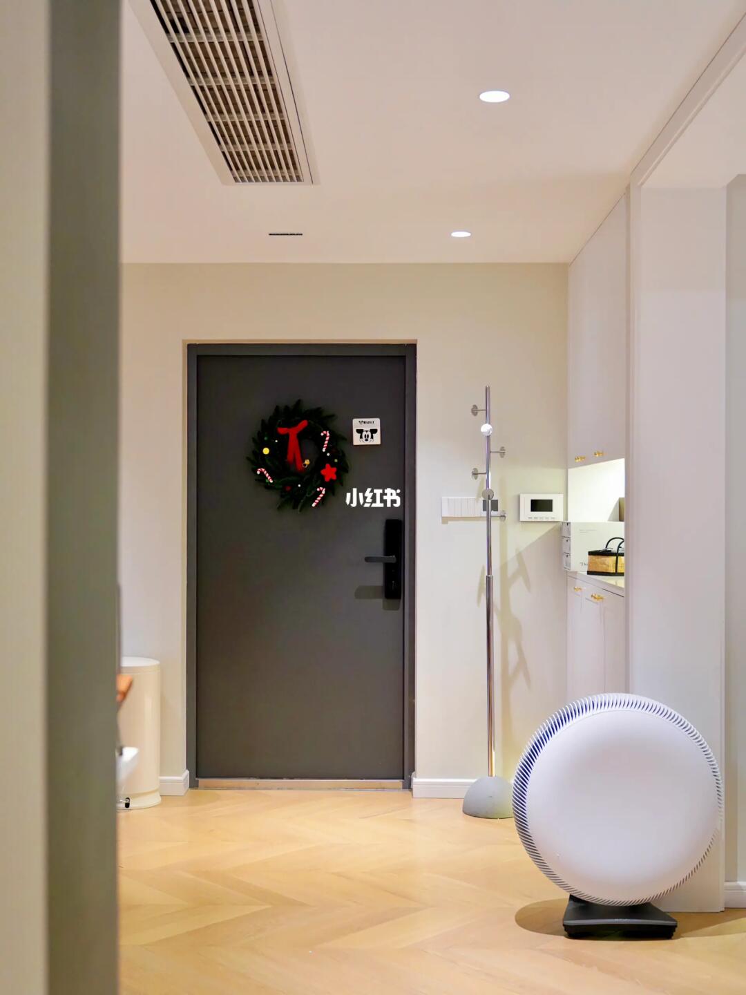 装修有得有失,因为只考虑到美观,全屋都选择了系统落地窗。客厅显大又亮堂的同时,双阳台的四个开扇因为餐厨一体的隔绝通风就稍显不足。加上家里软装家具等时常更换,开放式厨房,还有猫咪换季时掉毛严重,冬季不常开窗时,家里待久了很直观地会感觉呼吸不舒服。尤其是家里有小朋友的情况下总是担心甲醛和过敏。还好家属贴心,过年前给家里安排上了IQAir家的空气净化器,春节期间用了一阵子,有了些心得体验:真·年度幸福好物!