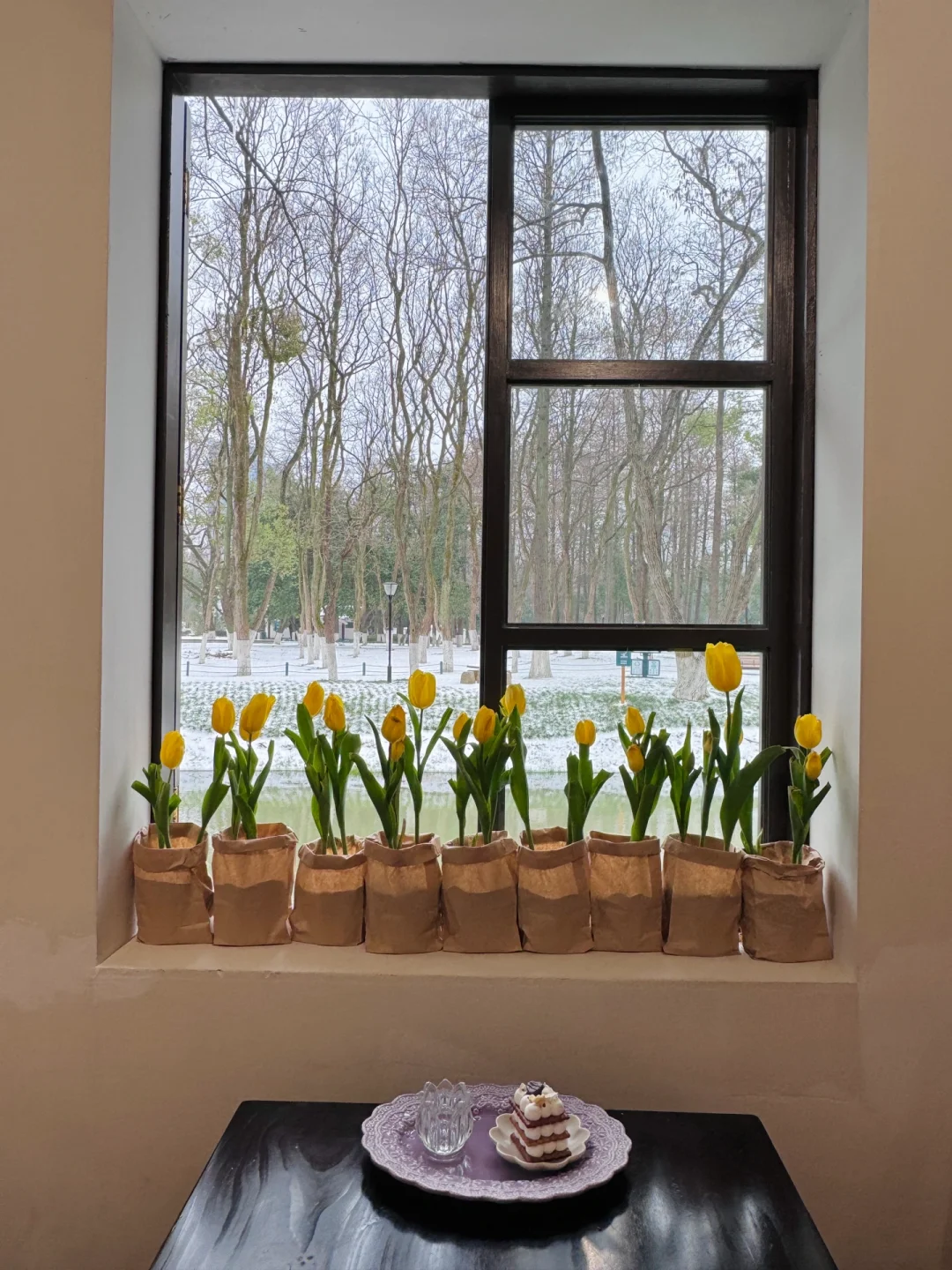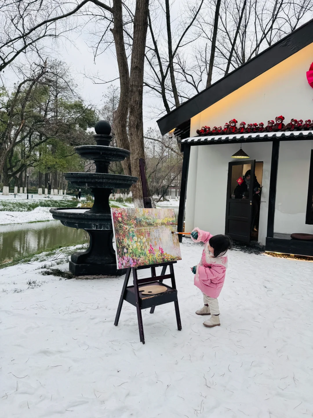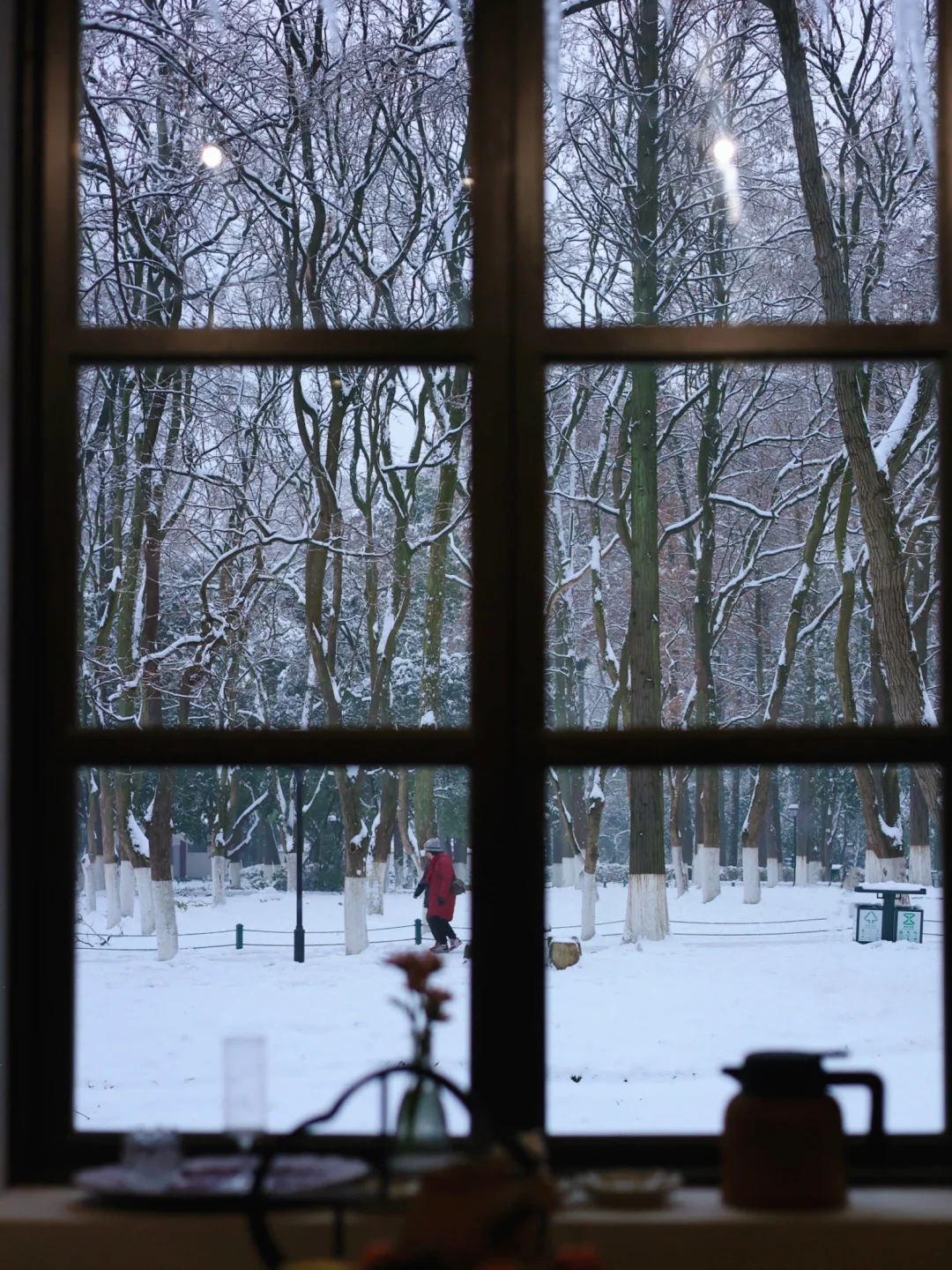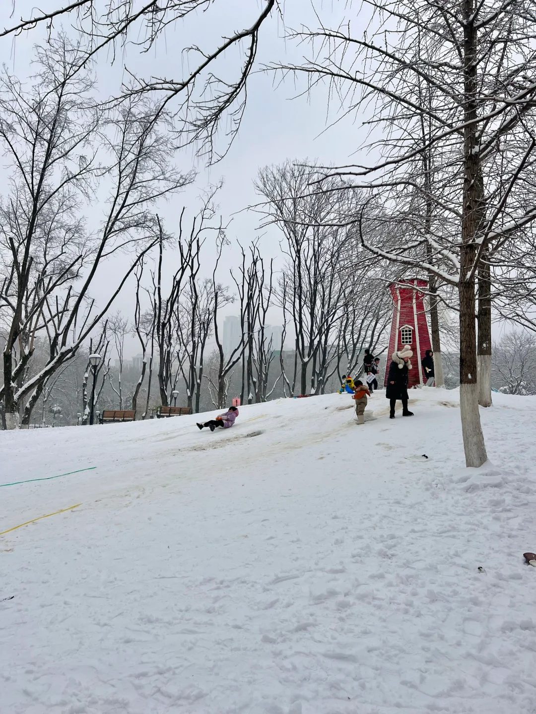 大雪后的公园也太美了吧! 随手拍拍都是情书即视感 找个坡就可以滑雪 没有娃可以拒绝❤️ 咖啡馆的大窗景仿佛穿越到了禾木的下午 📍解放公园2号门