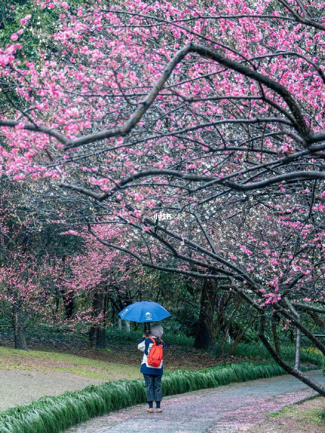 3⃣️广角拍摄大场景是可以适当抓拍赏梅的人、让画面更生动,地面的小路也形成一个很好的引导线构图(图9-10)