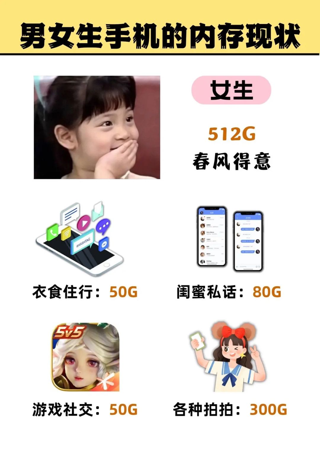 男女生手机的内存现状,512G还能再战三年