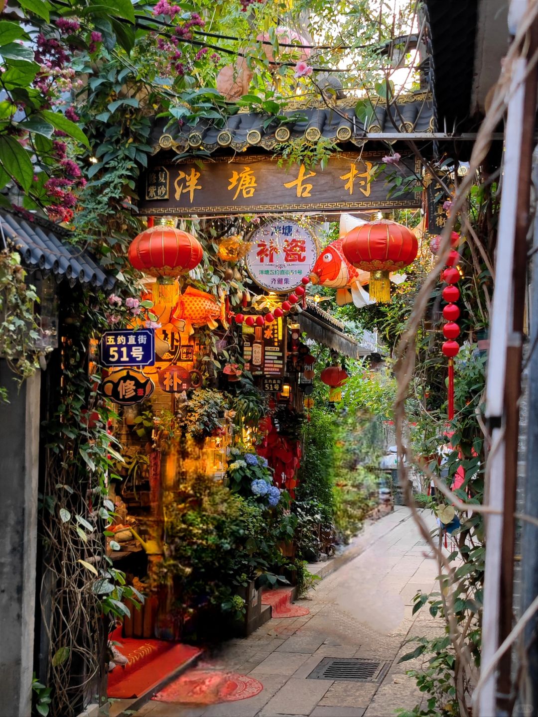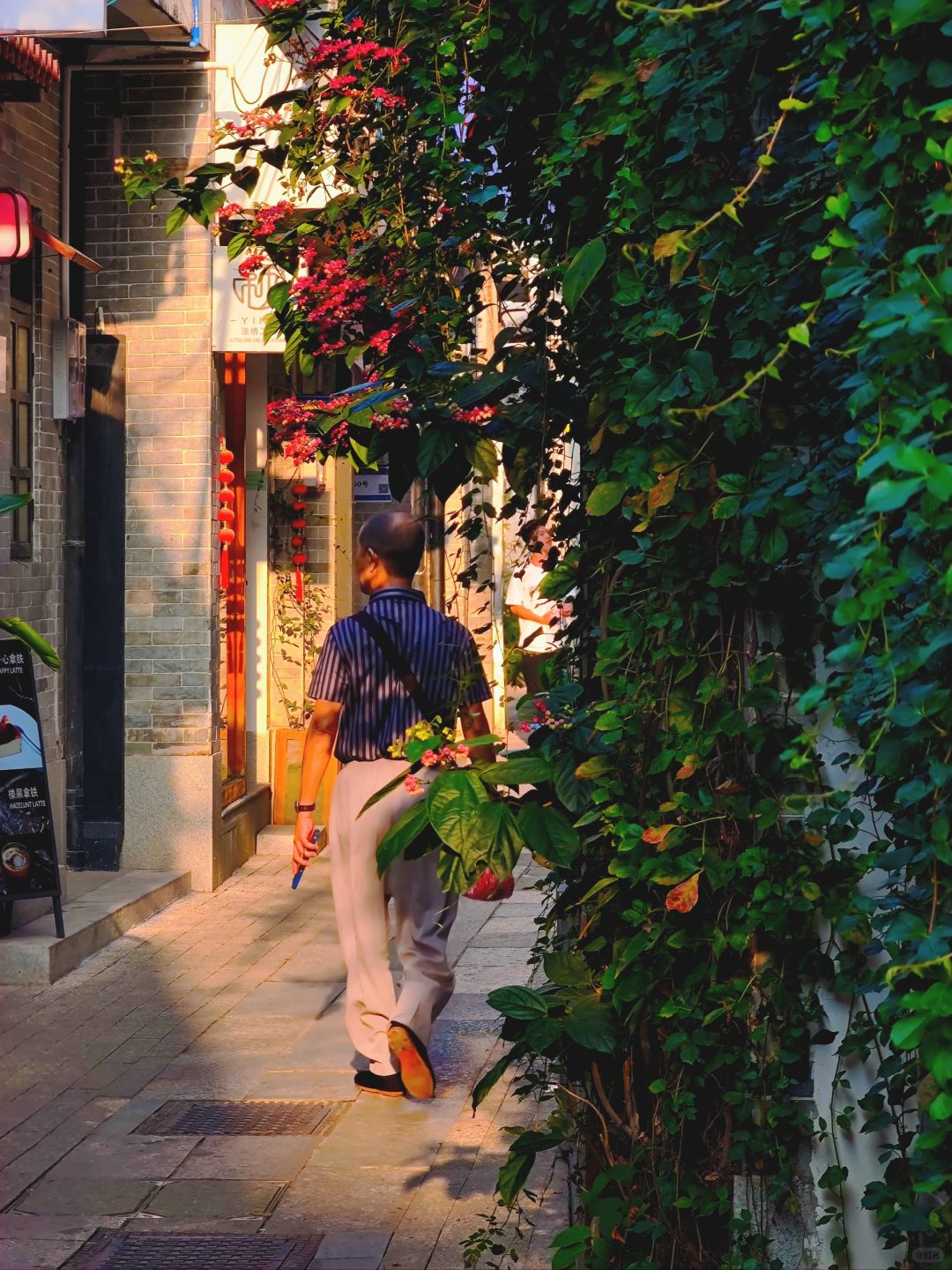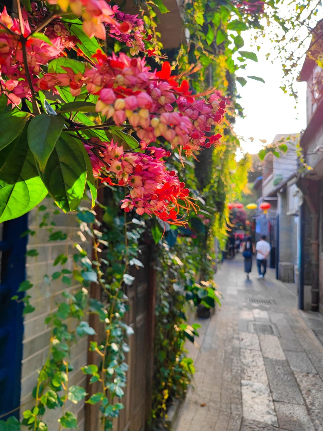 3️⃣扶西里:这里的青石小道两边布满了漂亮的花朵和绿植,斜阳下非常好看!