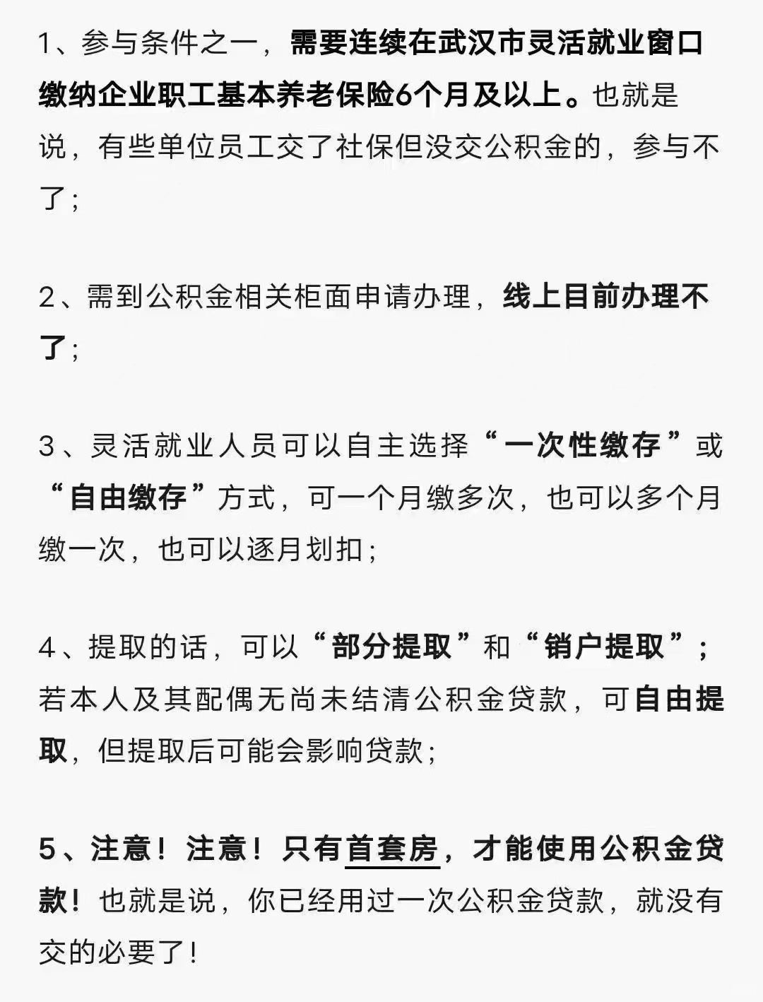 武汉最新公积金政策 ,灵活就业非职工也可以自由缴纳。