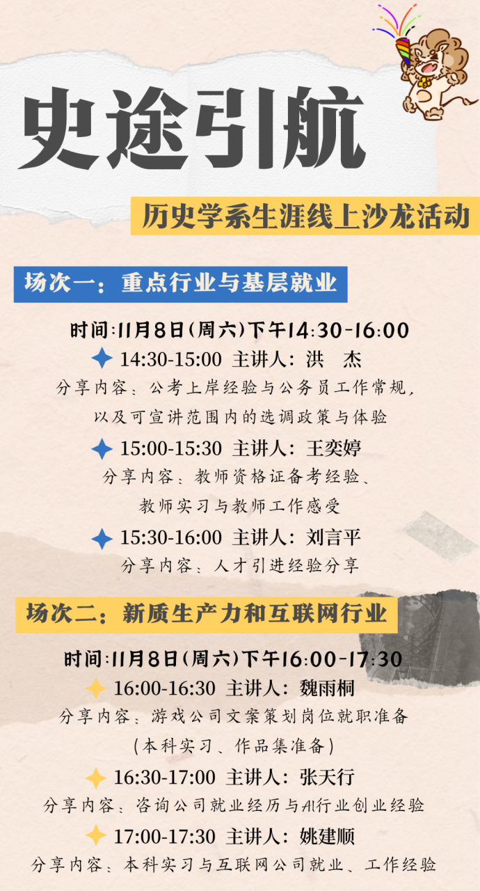 11月8日,复旦大学举办了以“史途引航”为主题的历史学系生涯线上沙龙活动,特邀2017届校友、Taala AI联合创始人张天行进行关于“咨询公司就业经历与AI行业创业经验”的主题分享。