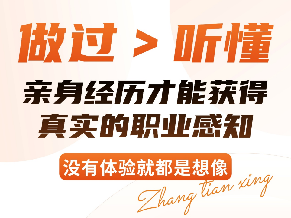 在此,他引用了乔布斯的名言“You can't connect the dots looking forward; you can only connect them looking backward”,强调所有体验都是未来的财富,鼓励学子们在决策时与其患得患失,不如勇敢地迈出一步,在不同的领域参与实践。张天行补充道:“理解一个职业,‘听懂’远不如‘做过’,没有体验就都是想象,只有亲身经历,才能获得真实的职业感知。”