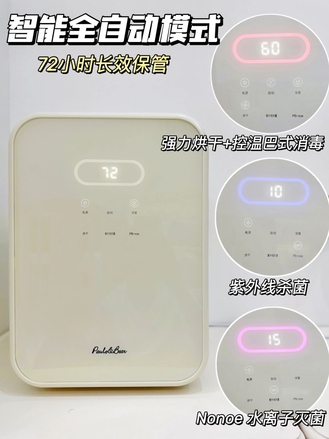 日常我出门都用这个自动72小时森林新风保管模式。然后进入72小时内每隔2小时消毒5分钟换气2分钟。等于是3天内无菌保管!真的很省心!