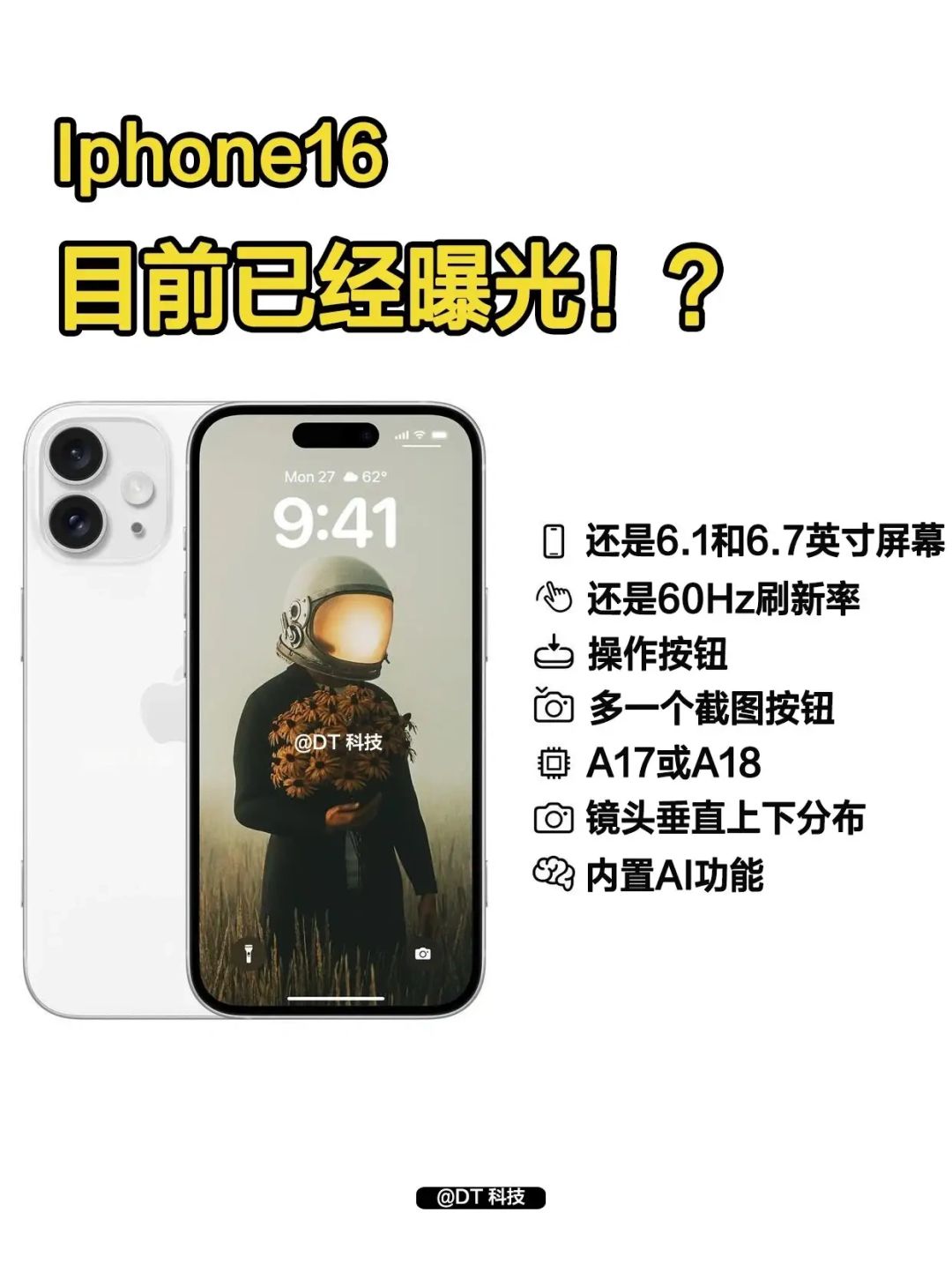 ⭐️处理器,升级A17处理器,iPhone15 Pro用的处理器是A17 Pro,iPhone16标准版只配用A17了不过也有说法会上A18,存疑。