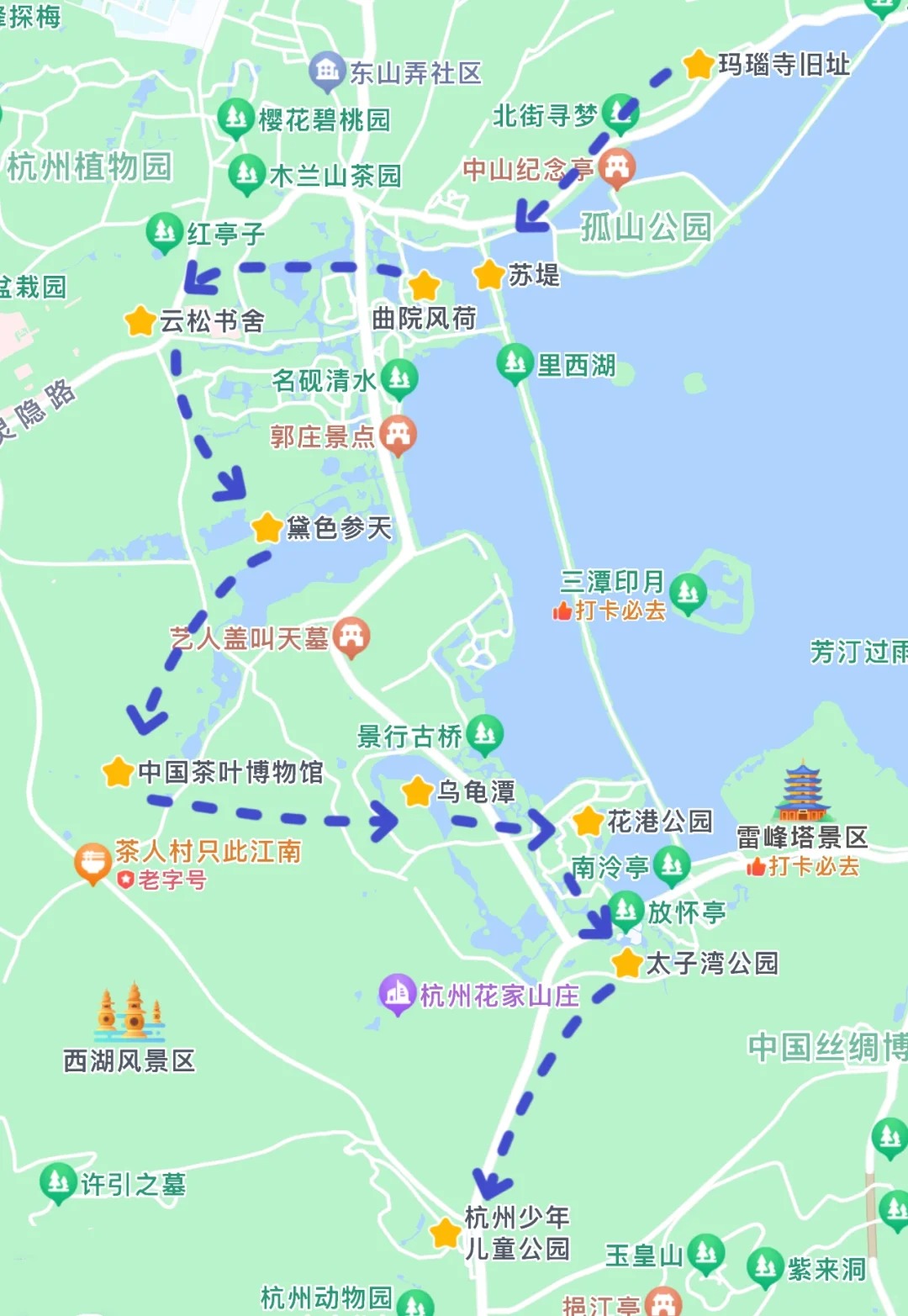 唯一缺点:只有杭州才有|西湖赏樱路线 ~~~~~~~~~ 马山杭州的樱花就要盛开了、拍了5年樱花给大家整理了一条西湖赏樱路线、1⃣️0⃣️地方都在西湖周边、而且各有千秋 ~ 1⃣️玛瑙寺(图4) 很小众的寺庙、基本没啥游客、院落里有几颗很大的樱花树、很有禅意 2⃣️苏堤(图5) 苏堤的樱花树临近水面、还可以拍到鸳鸯戏水 3⃣️曲院风荷(图1) 经典的机位、古典建筑被樱花环绕 ~ 4⃣️云松书舍 (图6) 金庸先生建的私家园林、目前对外开放、水面的倒影特别好看 5⃣️黛色参天(图2) 除了桥洞这里的樱花、亭子边上还有两颗大樱花树 6⃣️中国茶叶博物馆(图7) 这里的樱花树很多、而且搭配茅草屋很有特点 ~ 7⃣️乌龟潭(图8) 乌龟潭也有很多樱花树、靠近杨公堤的那里还有个平台拍照很好看 8⃣️花港公园(图9) 这里也是不少樱花树、游客也多 9⃣️太子湾公园(图10) 樱花和郁金香一起开放、还有大风车 1⃣️0⃣️杭州少年儿童公园(图11) 醉美樱花楼梯、人少景美 ~ 🌸拍摄&游玩攻略 1⃣️樱花花期一般在3月中下旬、花期较短、想要看樱花的提前安排好行程 2⃣️这些赏樱点基本都在西湖边上(图3)可以选几个感兴趣的串起来一并游玩 3⃣️除了少年儿童公园门票10元之外、其他地方都不需要门票