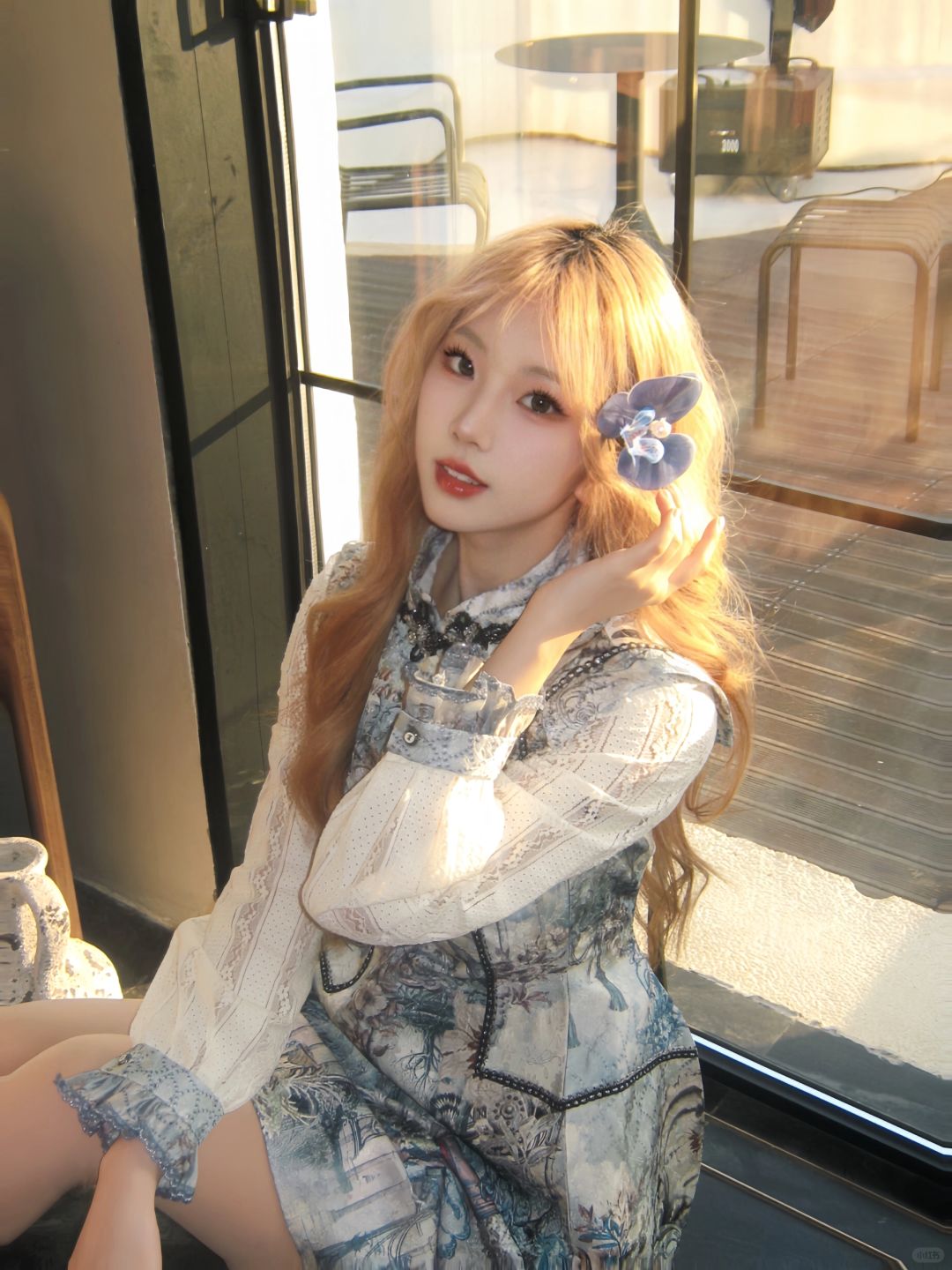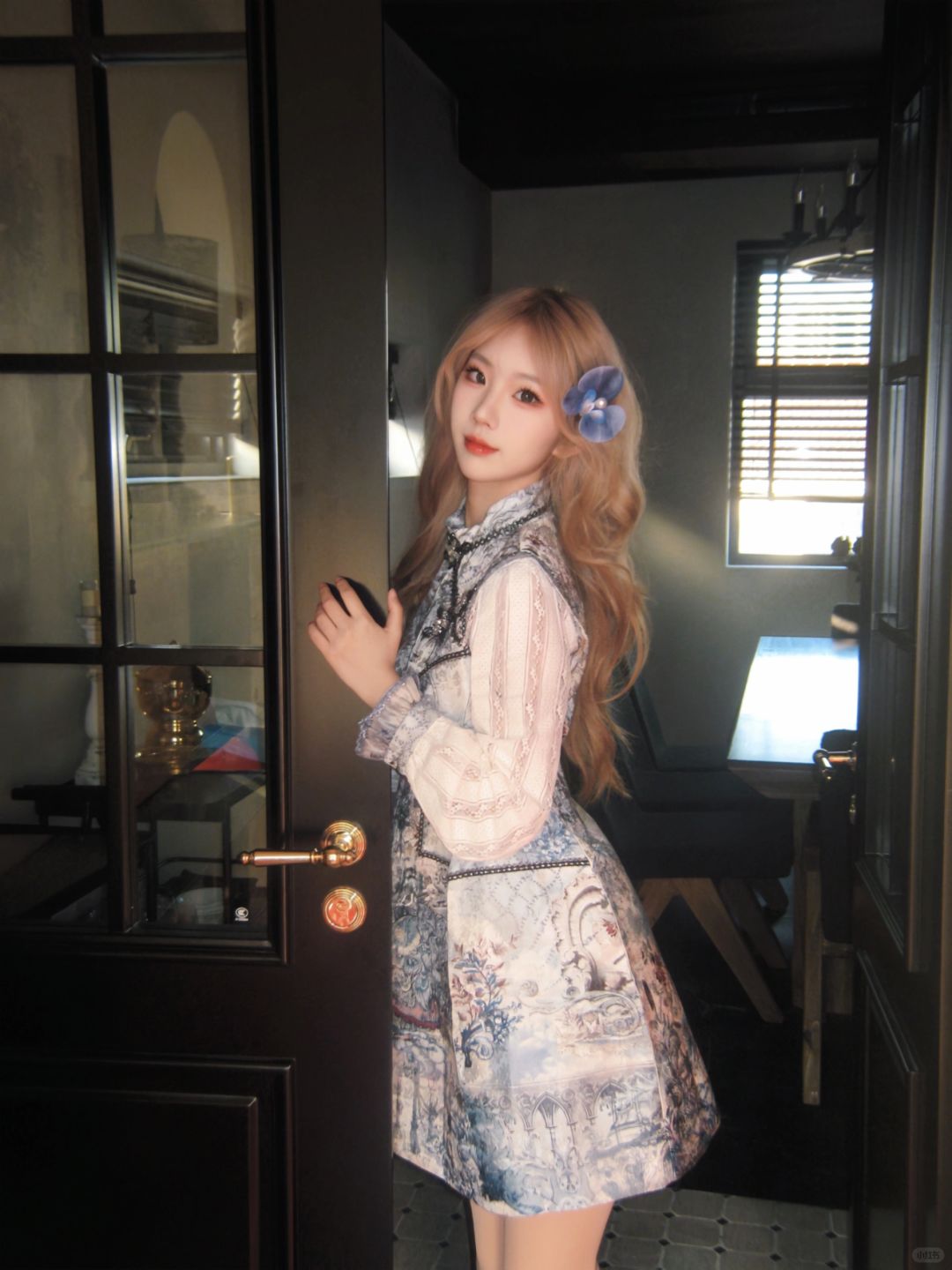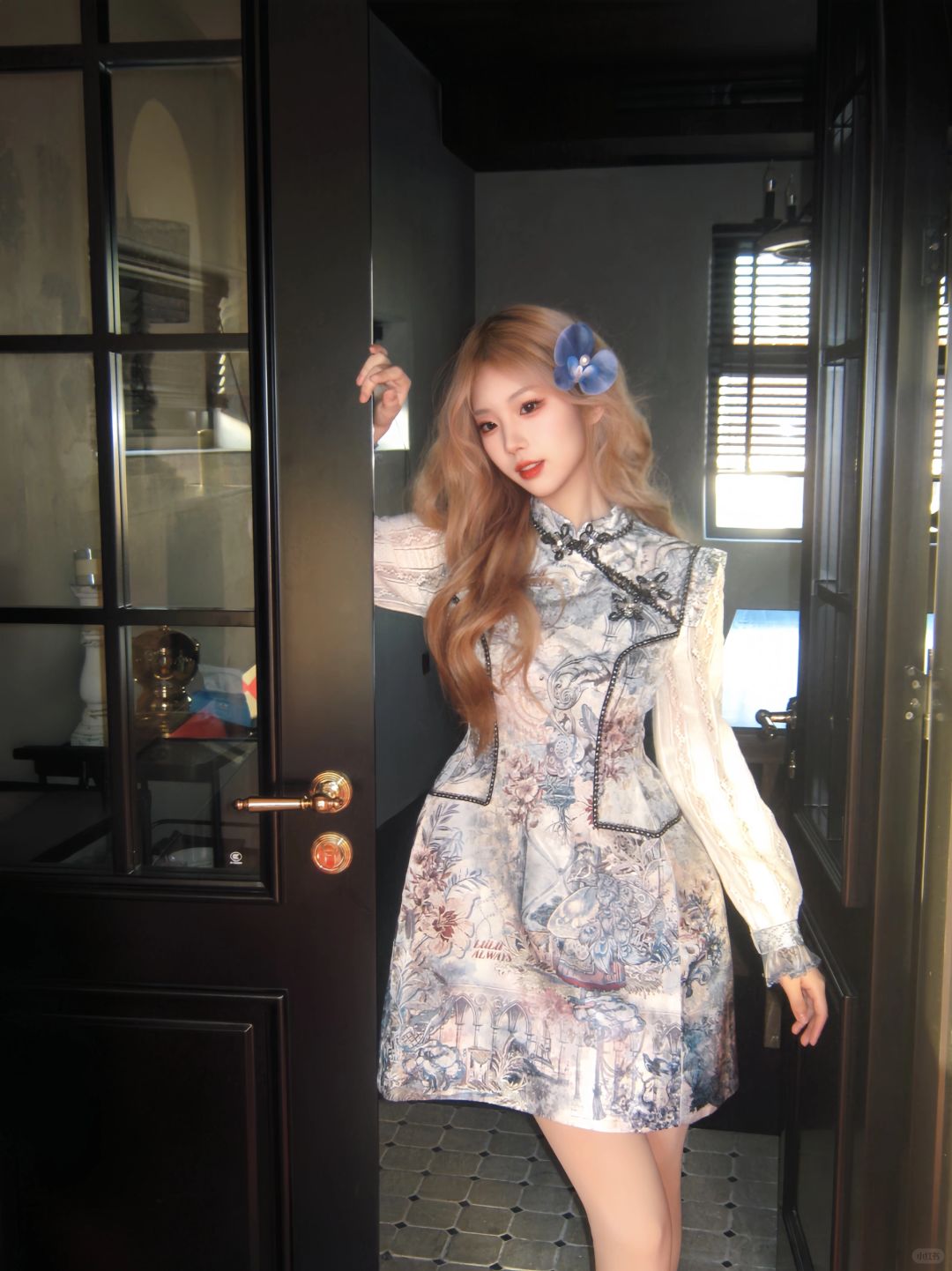 把花丛穿在身上 被夸好像洋娃娃 既新中式又古着感的一套 谁穿谁是公主!🎠