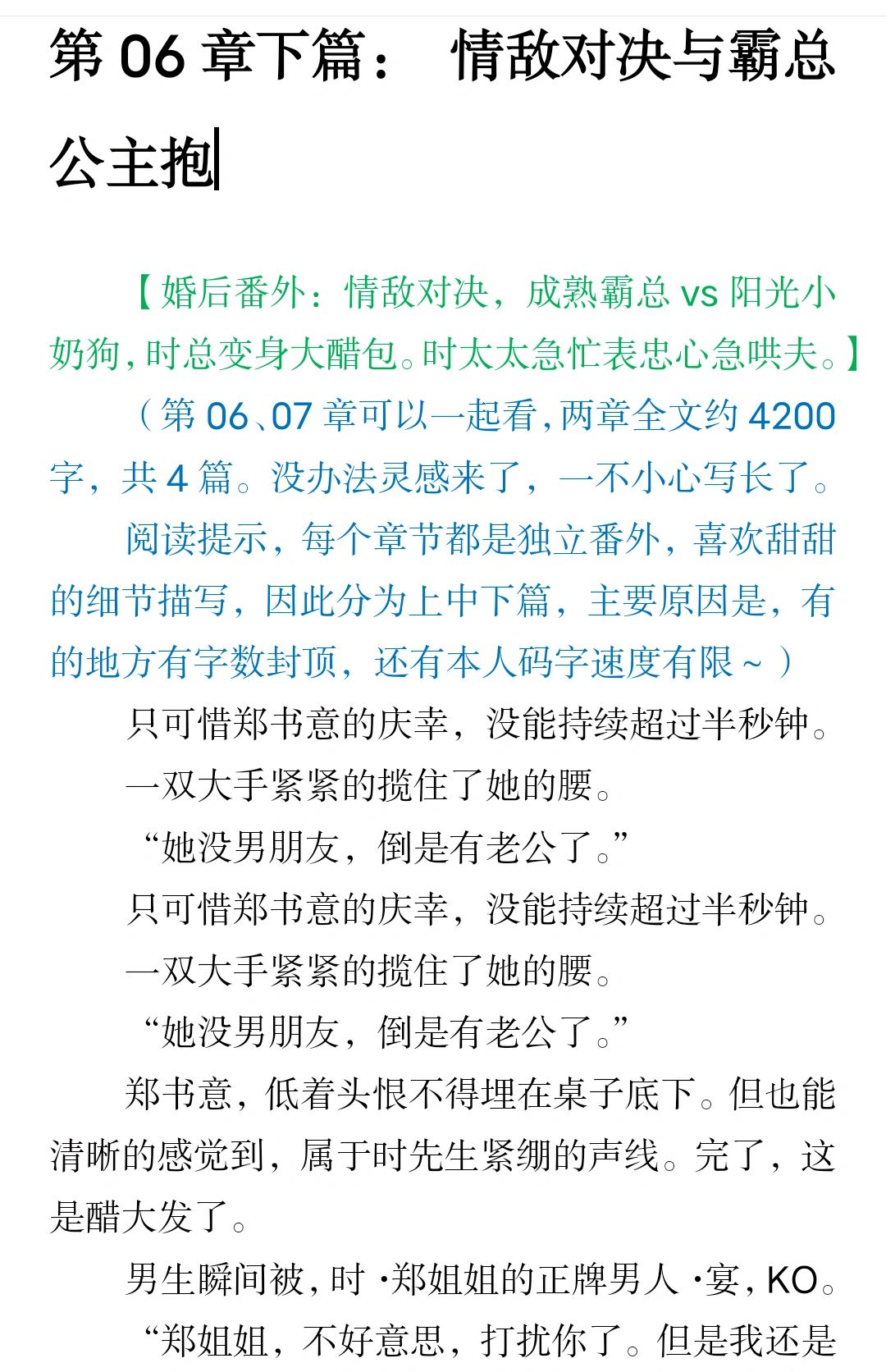 郑书意,低着头恨不得埋在桌子底下。但也能清晰的感觉到,属于时先生紧绷的声线。完了,这是醋大发了。