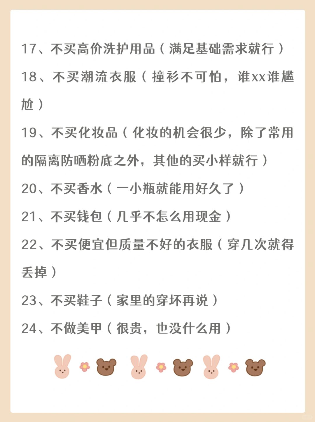 你好啊,我是玖玖 . 双十一预售已经开始啦,昨晚玖玖的一个姐妹,兴致冲冲给我发来了拼单链接🔗 . 我看了眼家里去年囤的纸巾,决定退出这一次的“血拼”[害羞R] . 其实,越是这样人人上头的大.促时刻,越要让自己保持清醒💥 . 玖玖根据自己的情况,整理出了【40个不买清单】✨,希望能唤回姐妹们的一丝丝理性,保持理智消费~ . 💗我是玖玖,一个热爱搞钱的95后深漂打工人 📌持续分享 理财知识 | 搞钱技巧 | 成长干货 💫希望遇见同频的你,一起解锁被动收入 .