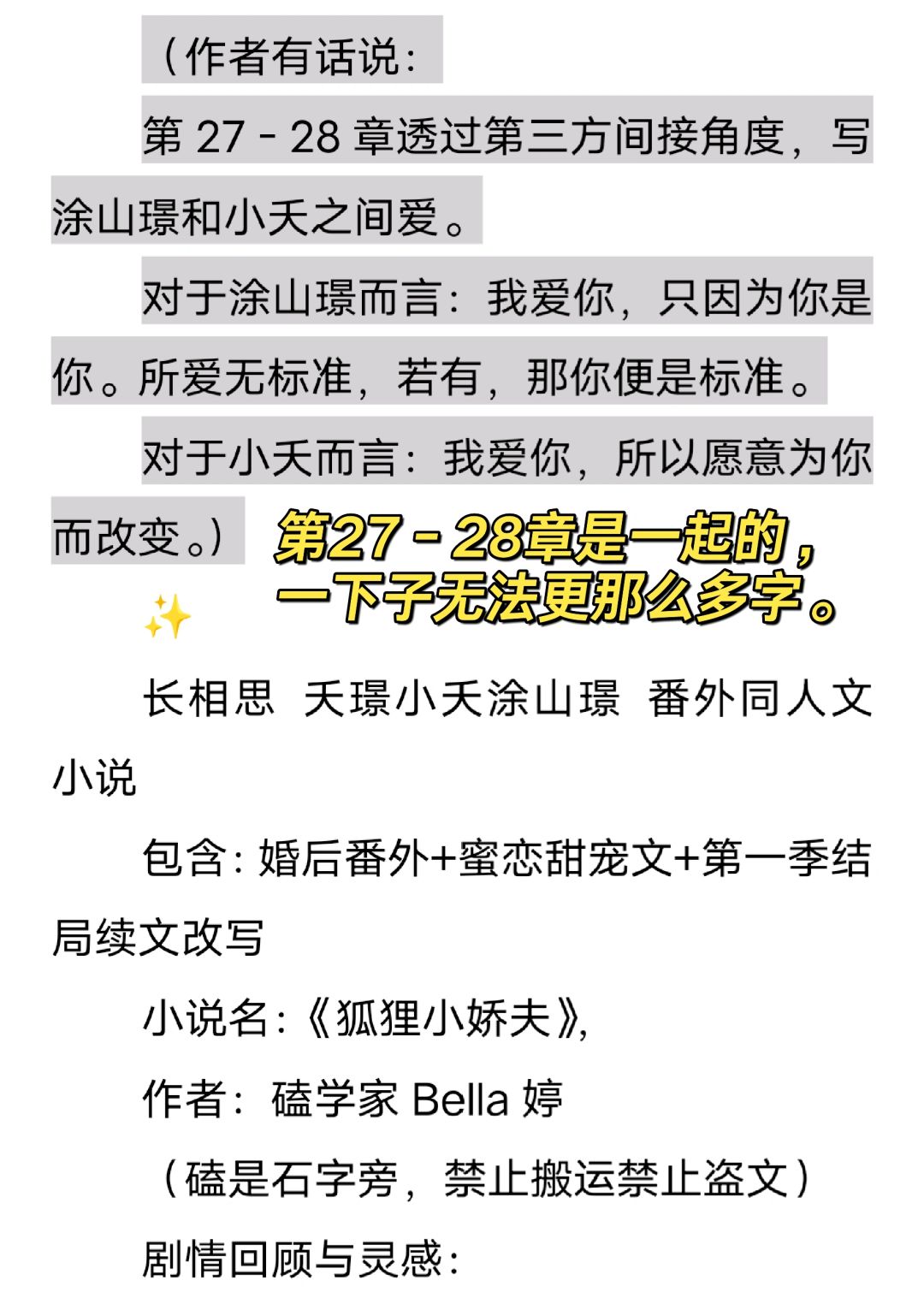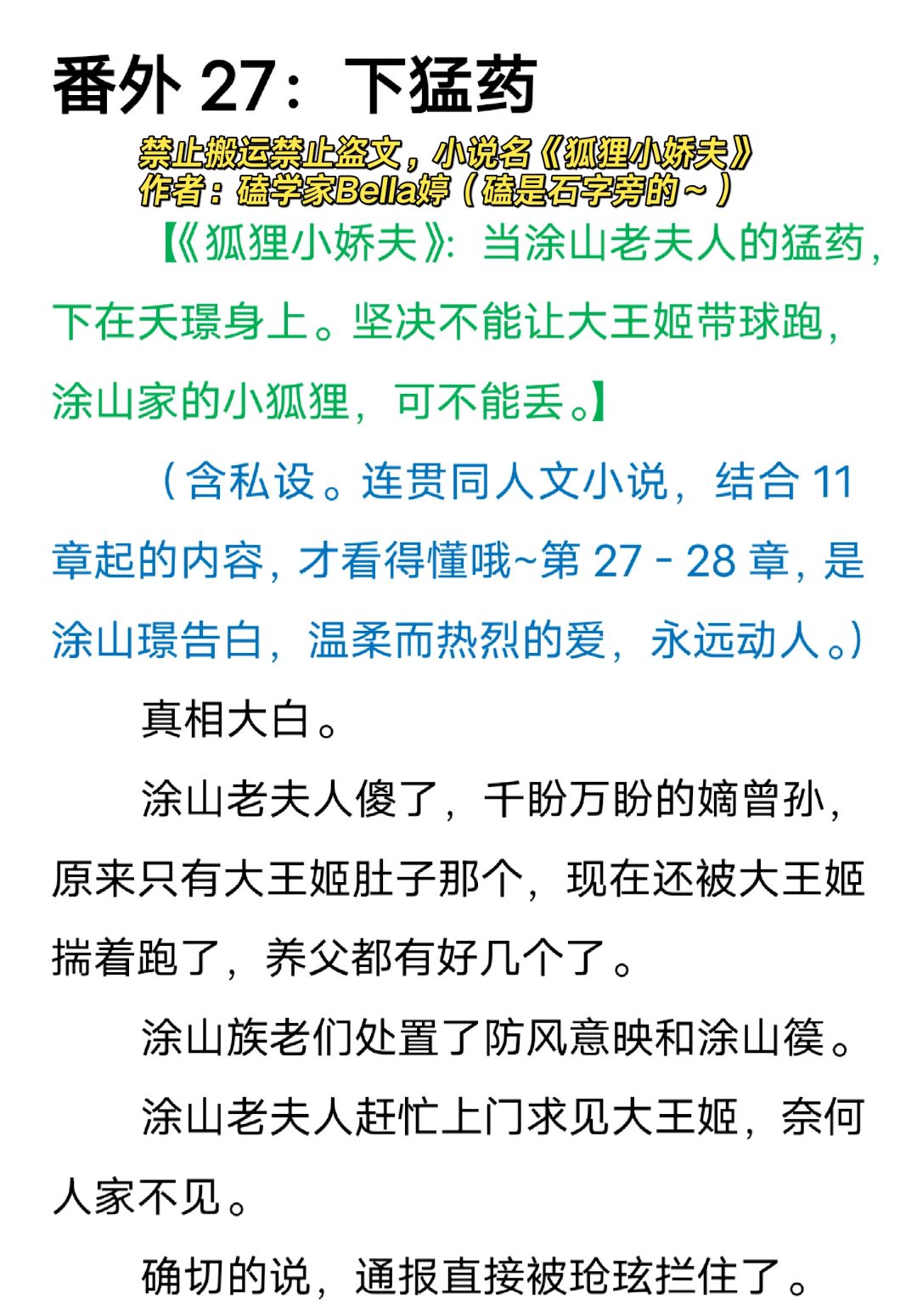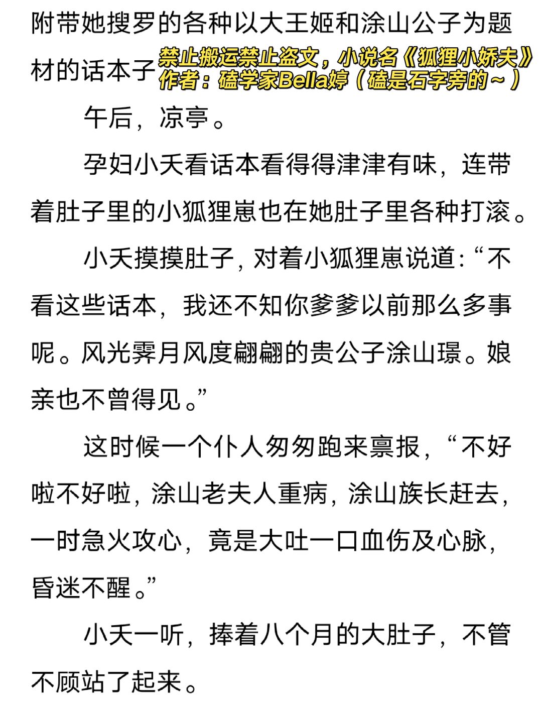 小夭摸摸肚子,对着小狐狸崽说道:“不看这些话本,我还不知你爹爹以前那么多事呢。风光霁月风度翩翩的贵公子涂山璟……