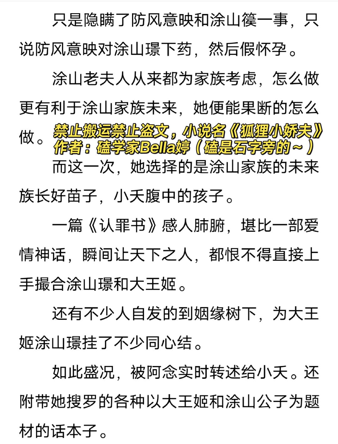 这么一想,涂山老夫人赶紧写了个《认罪书》,将此事前因后果,昭告天下,还大王姬清白。
