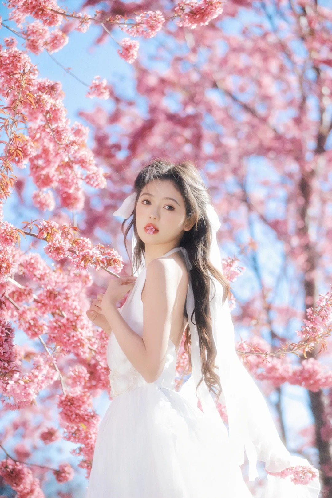 拍摄小tips 👗因为樱花是浅粉色的所以选择了一条白色的纱裙这样可以和樱花的颜色形成对比让人物更加突出 💄选择清新自然的妆容重点强调了腮红与唇部妆容淡淡粉色与樱花的颜色相呼应 🌌可以站在樱花树下让樱花作为背景这样可以营造出一种浪漫的氛围 💃🏻多与樱花互动用手去触摸樱花或者捡起地上的樱花可以让照片更加生动 👀拍照的时候要注意表情和姿势可以微笑 抬头 侧身等这样可以让照片更加自然