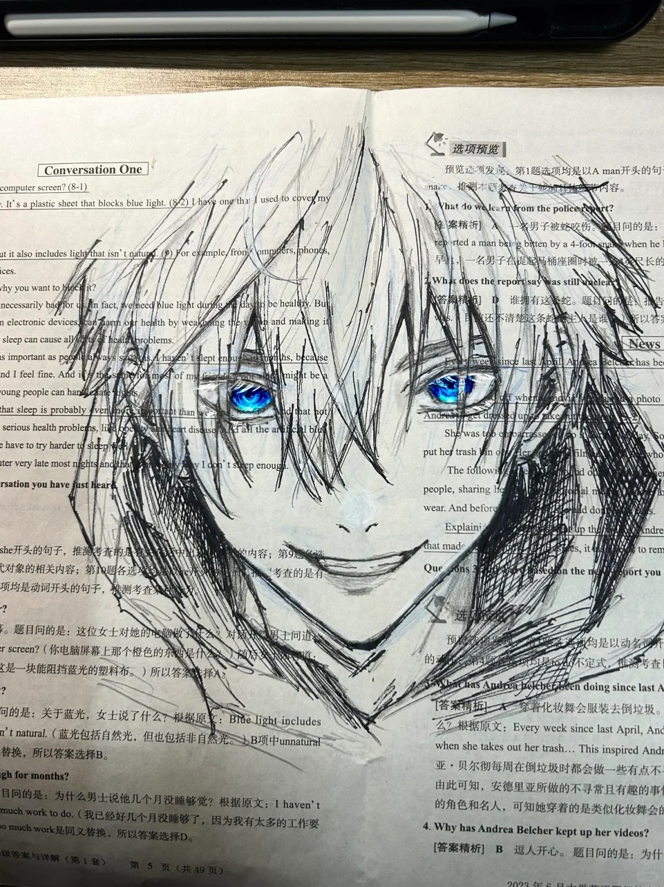查四级前自信在卷子上画画,结果没过
