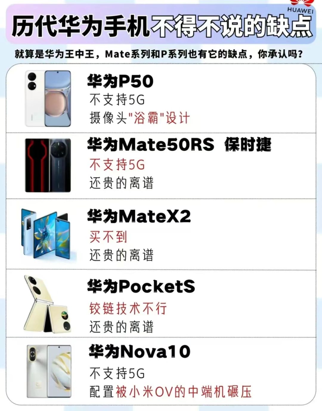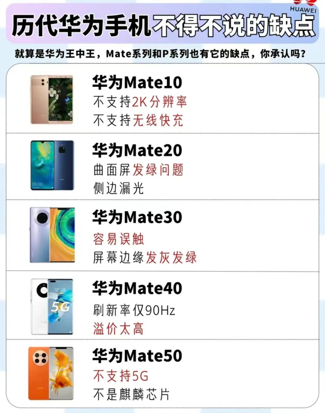 华为一直是很多人心目中的国产最强机,不过再好的产品也总有缺点,今天我们就来浅浅扒一下华为销量不错的机型。